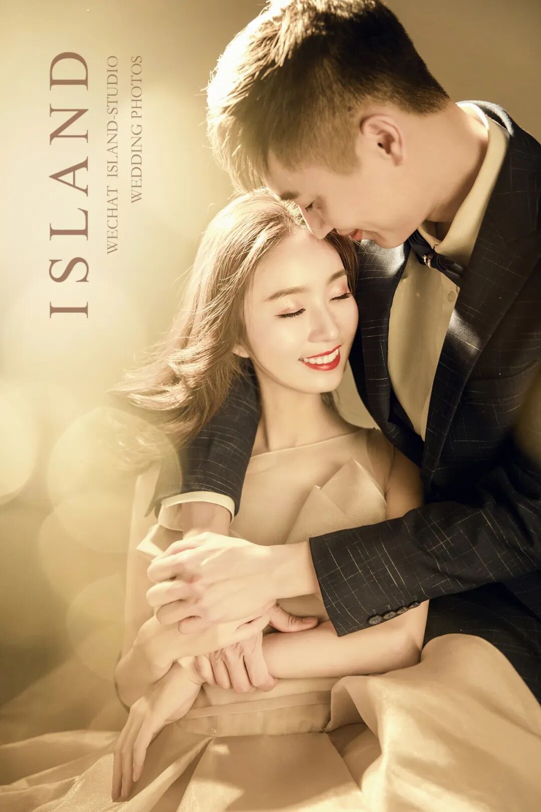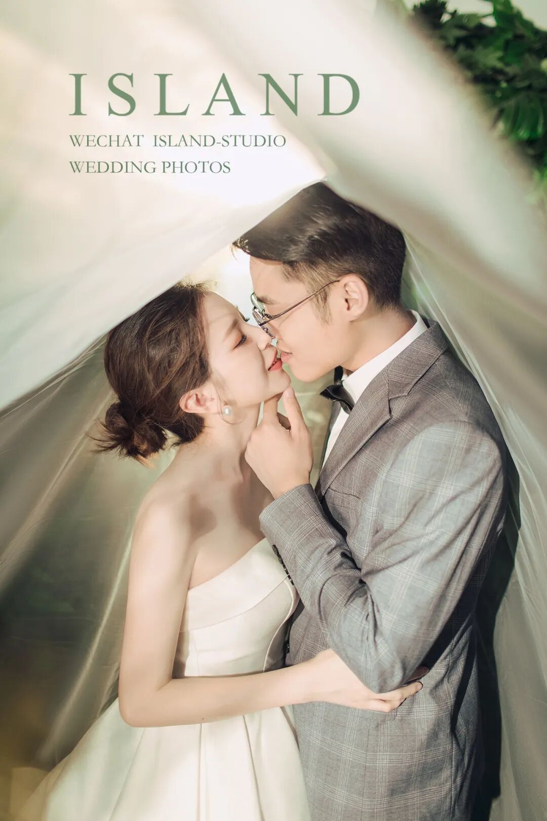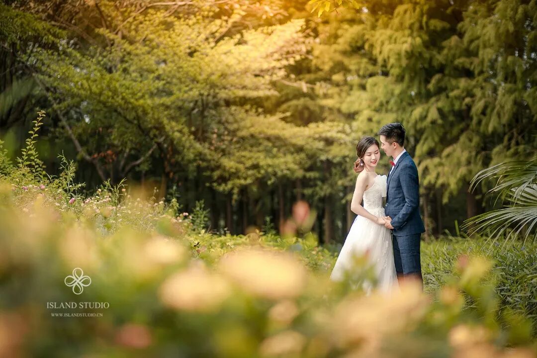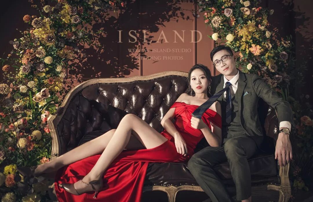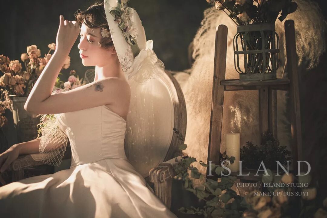 近距离拍摄,更注重细节。忽略背景、更突出人物的本身。内景婚纱照更能
