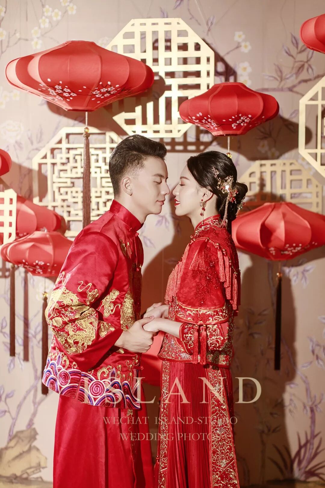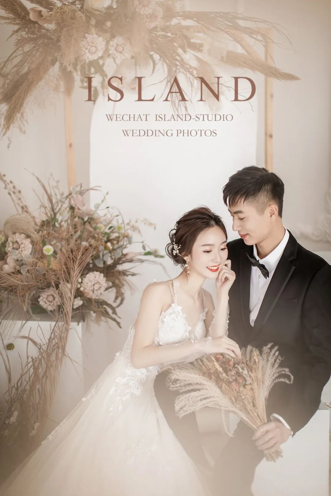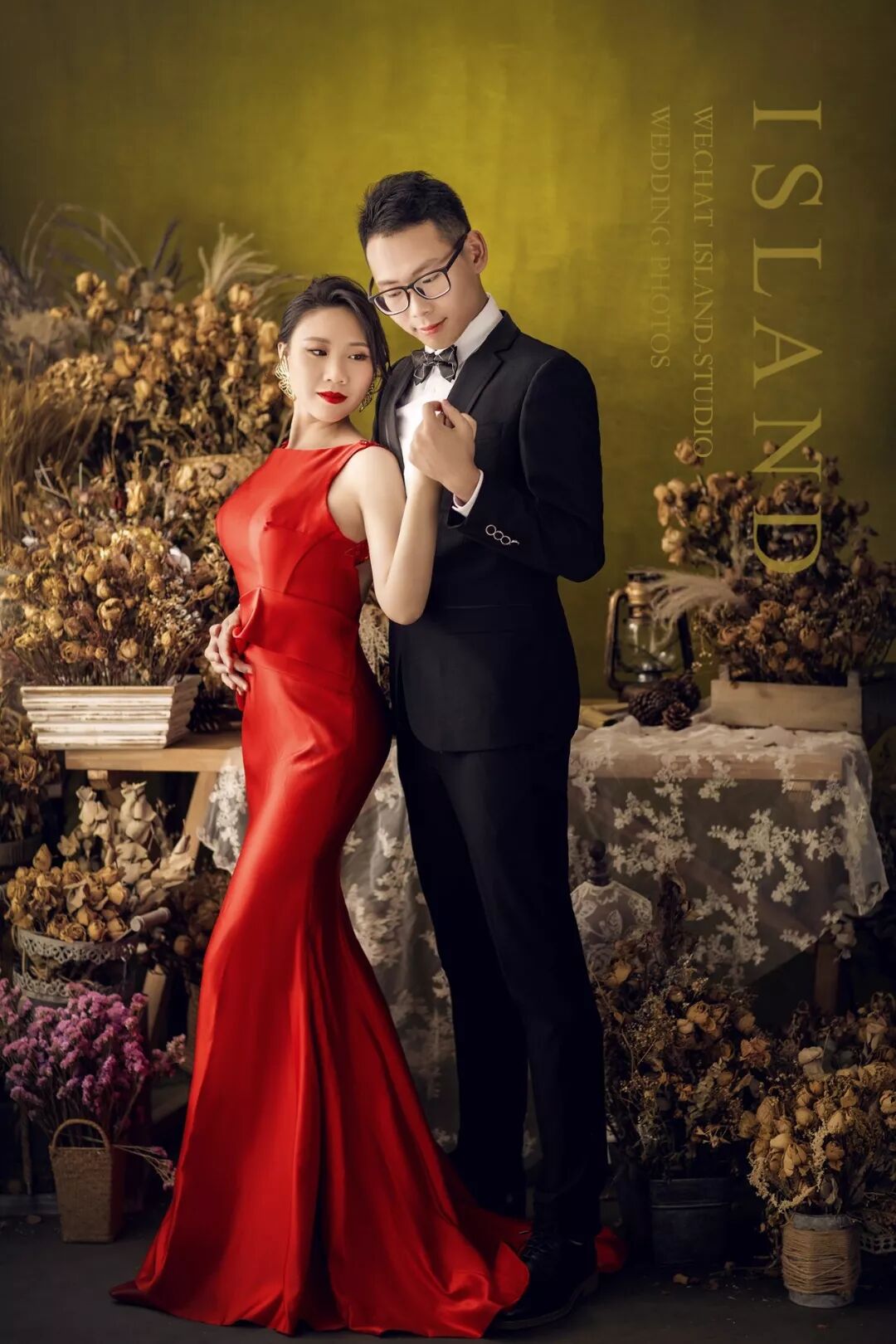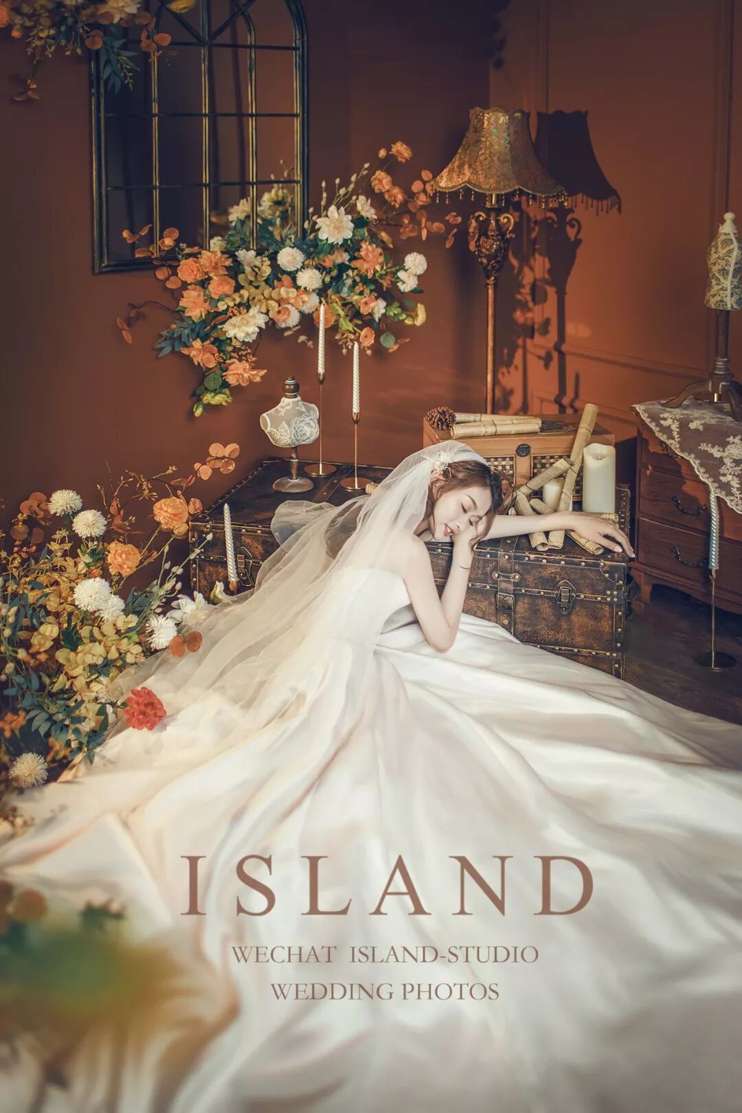 近距离拍摄,更注重细节。忽略背景、更突出人物的本身。内景婚纱照更能