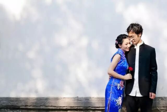 如果新娘穿着大红色旗袍,新郎选择深色正装即可。其他浅色的旗袍可以搭配浅灰色、灰色、白色正装。