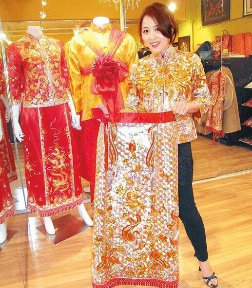 注意: 传统上,龙凤褂是“着一次,嫁一次”,所以试穿龙凤褂时不能同时试穿整套褂,须分上、下半身试穿。