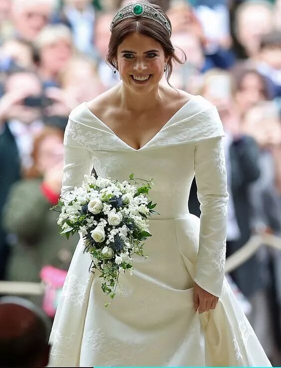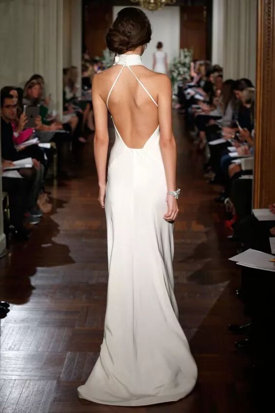 可能是梅根王妃的效应,准新娘们对于高领、削肩的婚纱设计而感到疯狂,领口以窄幅度的剪裁,隐约露出最性感的锁骨处,形成完美的平衡比例。