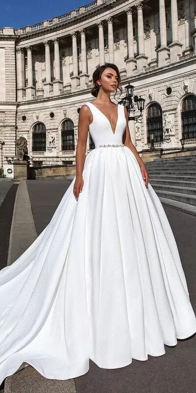 简约的风格设计一直都是婚纱的经典款,像是梅根王妃的婚纱,就属于这种系列风格的婚纱,想当然也是大家跟随的经典设计。