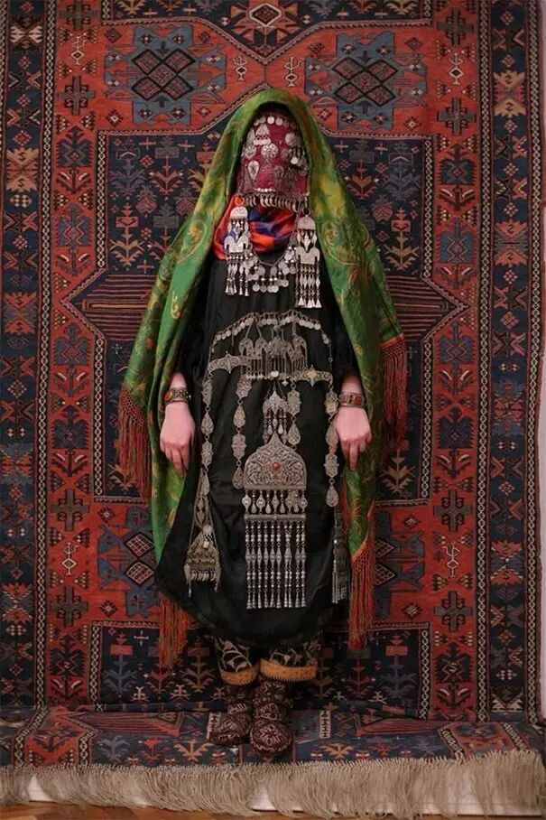 土库曼斯坦新娘,结婚时要穿带有花纹的斗篷。