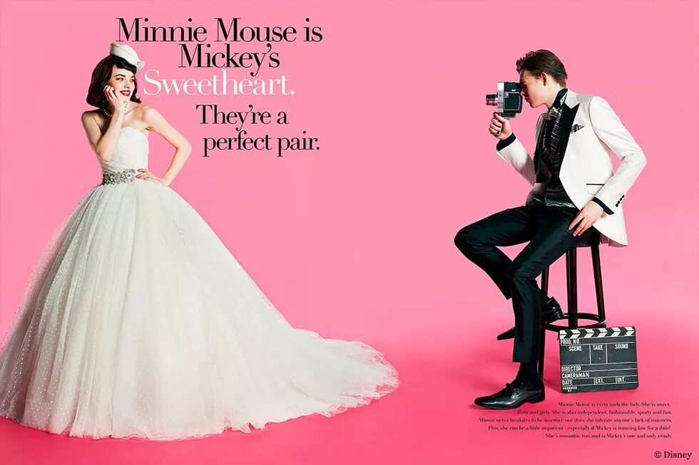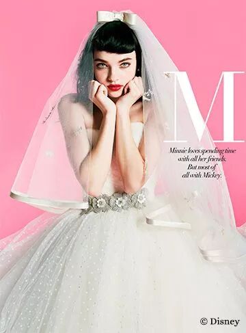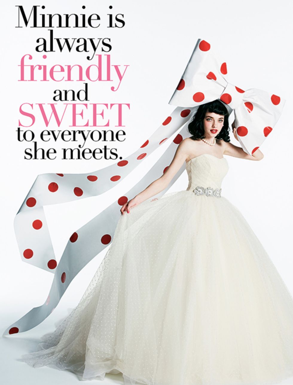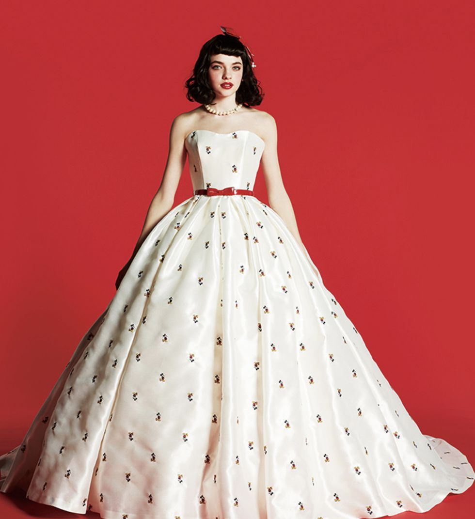 这套婚纱主要以米妮身上的点点(Polka Dot)作为灵感,为整件礼服布满白色圆点。