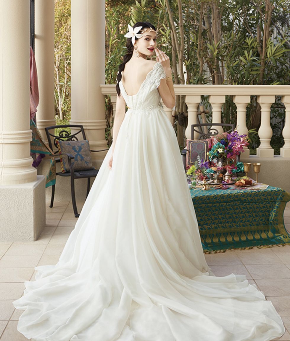另一套则是将茉莉公主的特色融合传统白纱,穿上后典雅高贵,又有着特殊的异域风情。
