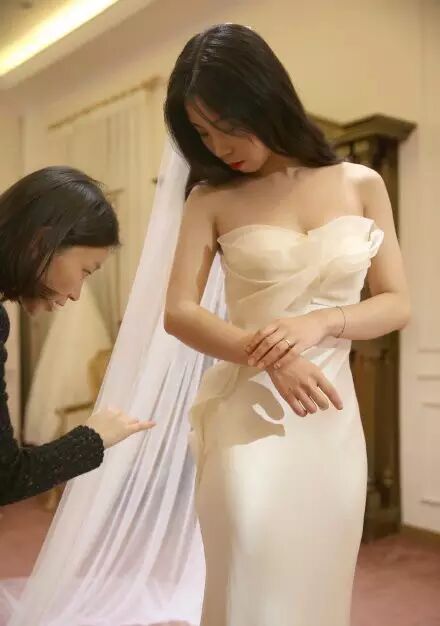 买一套婚纱无疑是最好办法:款式、花色、尺寸都可以自己决定。不仅合身,还能扬长避短修饰身材。