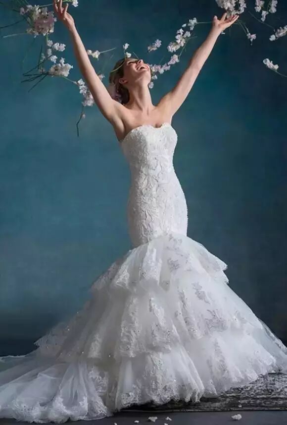 而就她的身材来说什么类型的婚纱都能轻松驾驭吧,