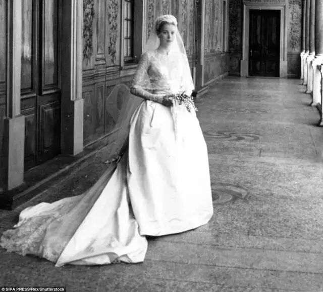 这款婚纱的灵感来源就是Grace Kelly同款嫁衣。