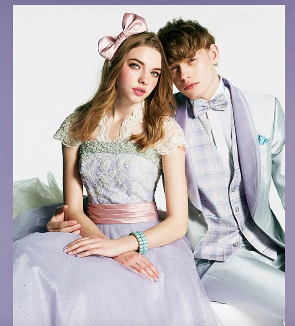 浅粉色礼服,绣满了精致的花朵,甜美可人