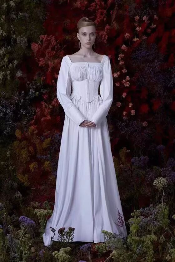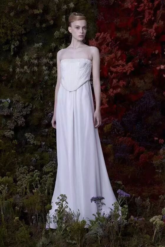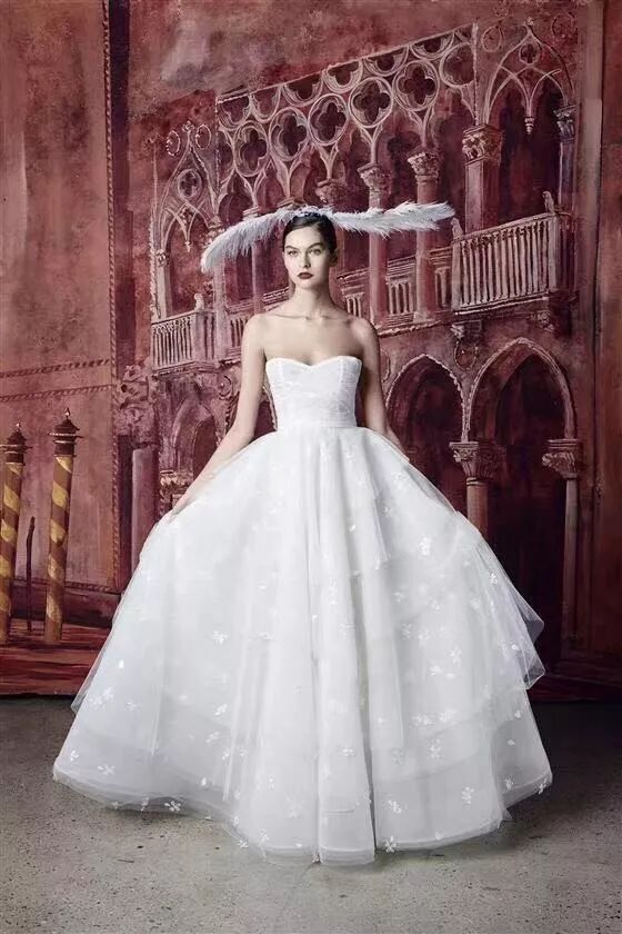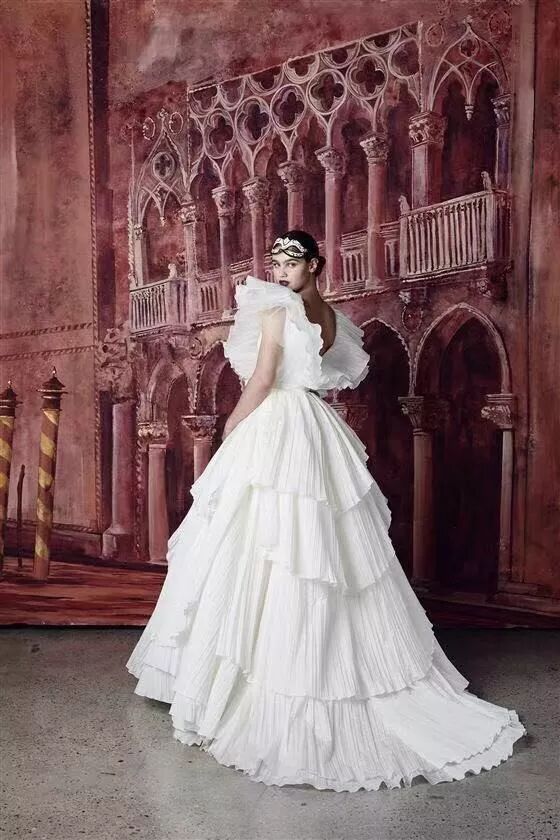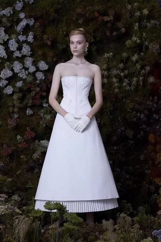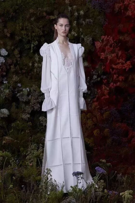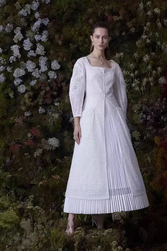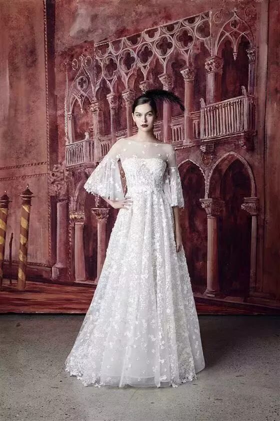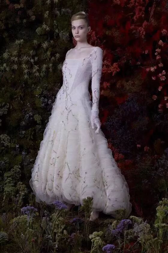 2020/21秋冬最具创新力设计的婚纱 最初的婚纱,设计不很复杂。就是垂直线条的高腰长裙。后来婚纱款式变成长及足踝的样式,前幅裙用直线剪裁,后幅则缀上另一幅拖地的裙摆,当新娘走在教堂的红地毯上时,拖地的裙摆也在地毯上徐徐而过,令新娘有天仙般的风姿。以后的婚纱式样,上紧下宽,低领口被端庄的高领口所取代。