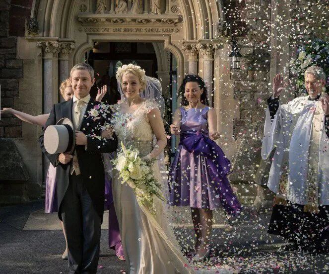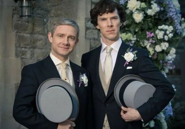 穿晨礼服参加婚礼,最典型的莫过于华生。戗驳领,一粒扣,大圆摆,还有为搭配新娘婚纱的香槟色领带。