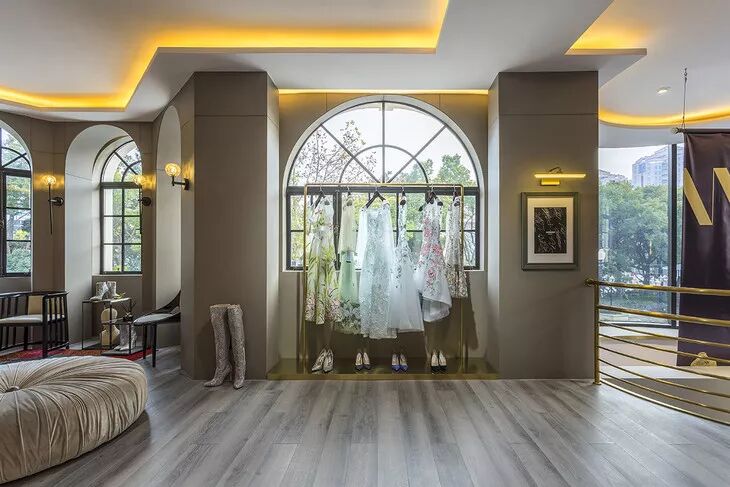 用郁金香和剔透亚克力堆搭的现场,重构出一座充满艺术气息的魔都乌托邦,伴随着wangfeng匠人缝制馆的开业,也将为“China Design ”增添另一种感知礼服的可能性。
