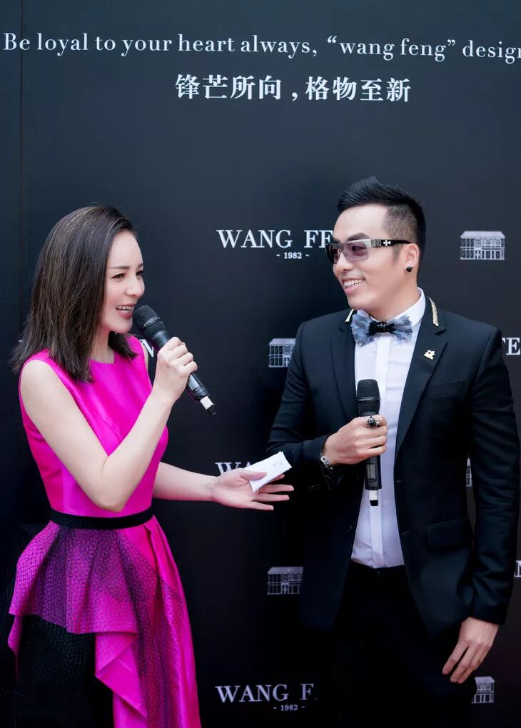 而15年的设计累积,也让友善的王锋结交了不少明星及媒体好友,明星王琳主持了本场开幕仪式。她穿着WANG FENG 为她设计的玫红色礼服,寓意WANG FENG高定红红火火。