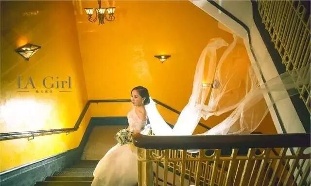 下面小编就带大家看看LA Girl家的一字领婚纱吧。