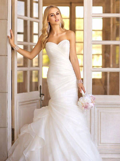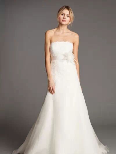婚纱设计中最常见的款式,不过它可能使身材娇小的人显得矮胖哦,小心。