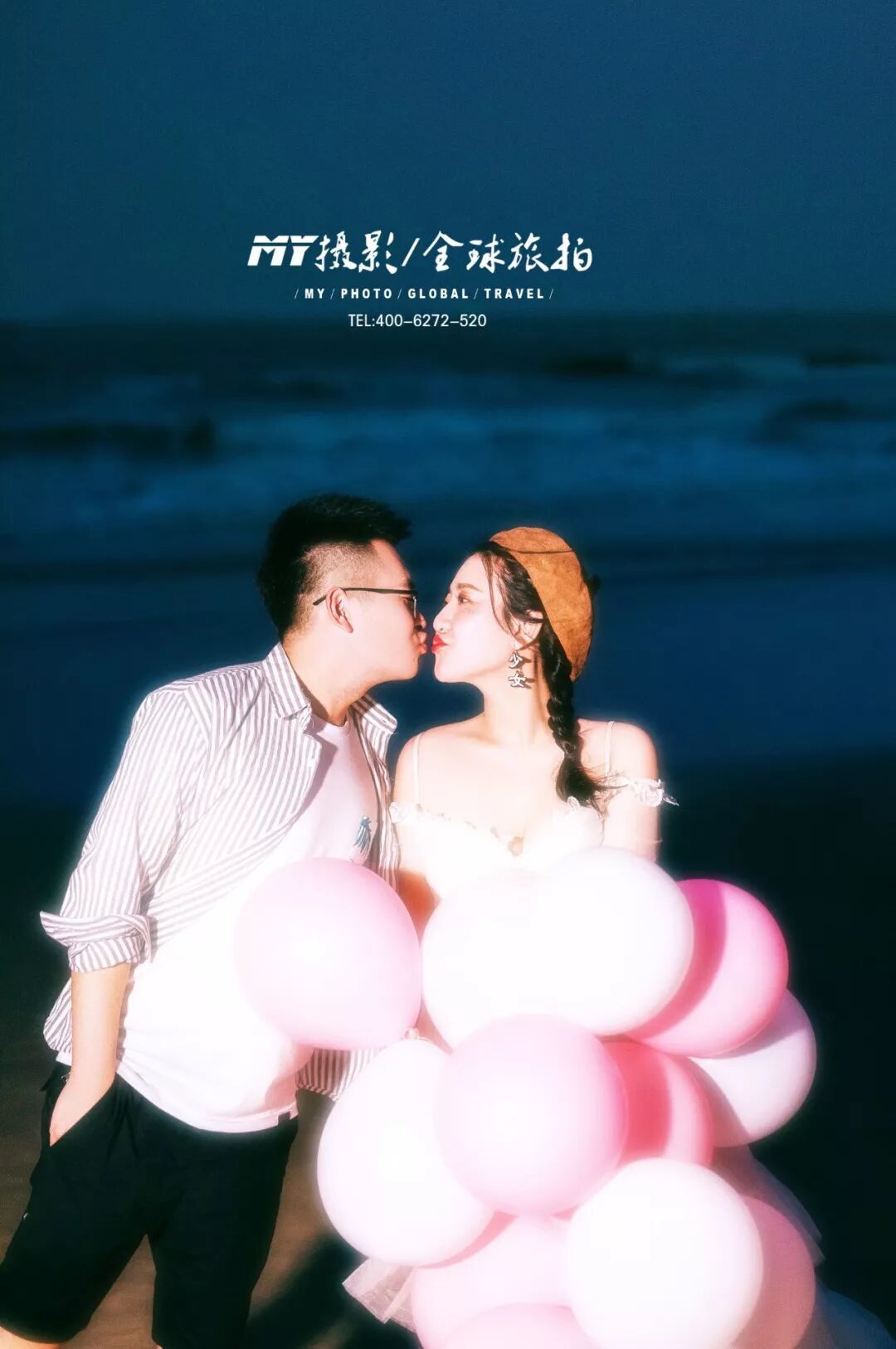 一般外拍的时候。我会比较建议选择穿情侣装,白裙子或白衬衣,或是一些颜色比较淡雅的衣服。因为外界环境比较嘈杂。淡色的衣服更容易突出主体。