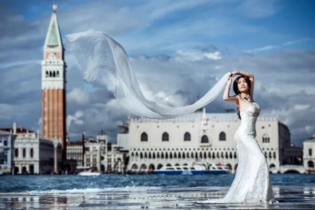 最主要的,这样才能更好地展现出景观的多样性与复杂性,因为融入了人的主观感受与审美倾向。提升拍摄技术,增加画面的艺术感摄影师需要对环境空间有足够的认识,然后再通过一些技术手法来使画面更生动、唯美,或更具韵味,例如选择不同的镜头、设定拍摄角度、设计画面构图、控制景深、选择或干预环境光线,以及对人物和环境预先进行判断。接下来,我们就具体探讨在欧洲城市拍摄景观婚纱照的一些技巧。