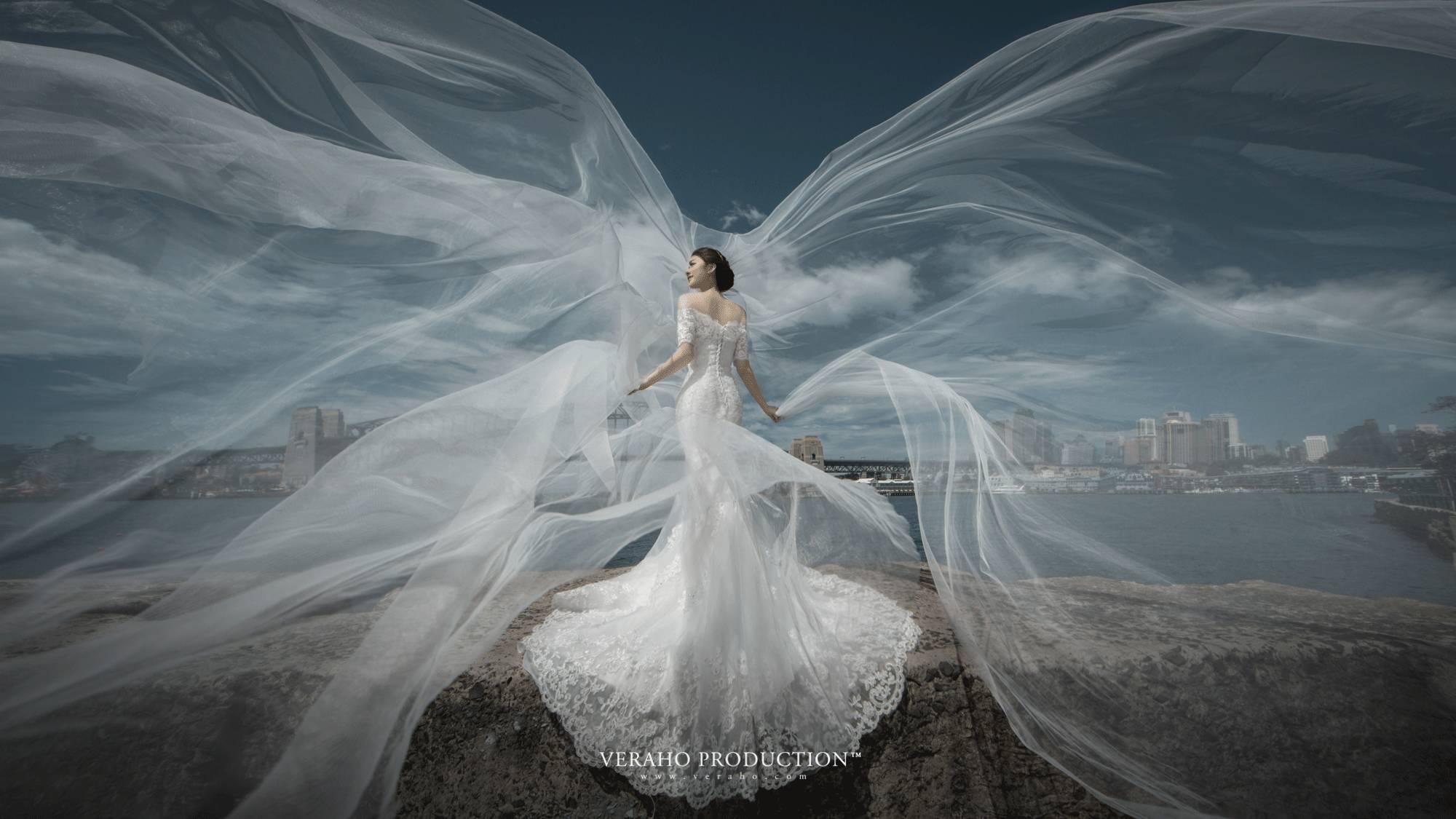 很多客人怕鱼尾款太内敛,拍不出大片的效果,其实只要摄影师加一点后期,同样可以让鱼尾款婚纱成为大片的元素。所以你只要挑选最喜欢的婚纱,拍摄效果就交给信任的摄影师吧。