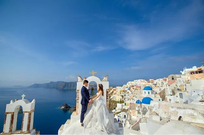 希腊圣托里尼就不必说了,一提到它的名字我们就能想象白色房子蓝色屋顶.-望无际的蓝色海平面这种画面。虽然价格昂贵,但是为了自己的婚礼来个浪漫欧洲行也不是不可啊!
