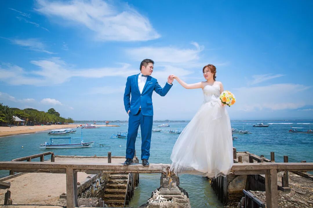 巴厘岛不像马尔代夫样花费这么昂贵,很多条件允许的新人会去这里拍摄婚纱照,一是因为它有其独特的文化底值,一是因为印尼的巴里鸟景色美不胜收.有着世界最美十大落日的美景。