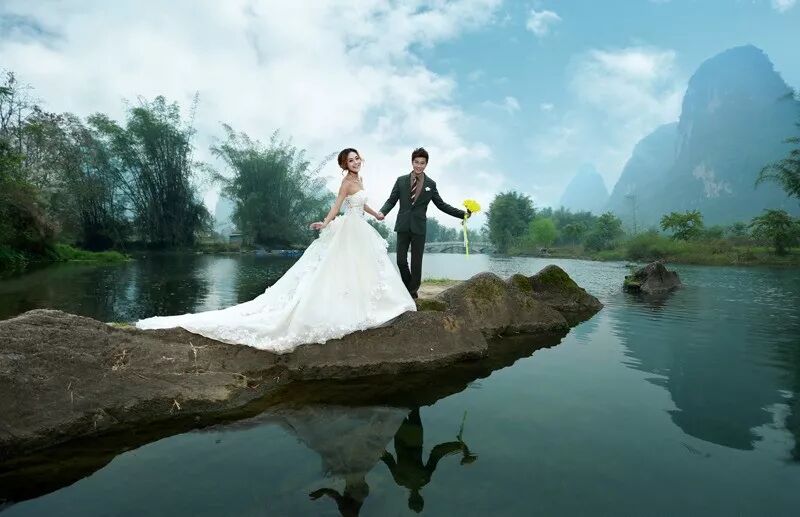 桂林享有山水甲天下之称.还拥有千姿百志山地。你在桂林就仿佛走进了连统不断的画卷,选择在这里拍婚纱照会是十分有创意又优雅。