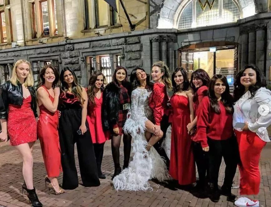 Nick和Priyanka综合两方的习俗,邀请 了12位伴郎和12位伴娘。