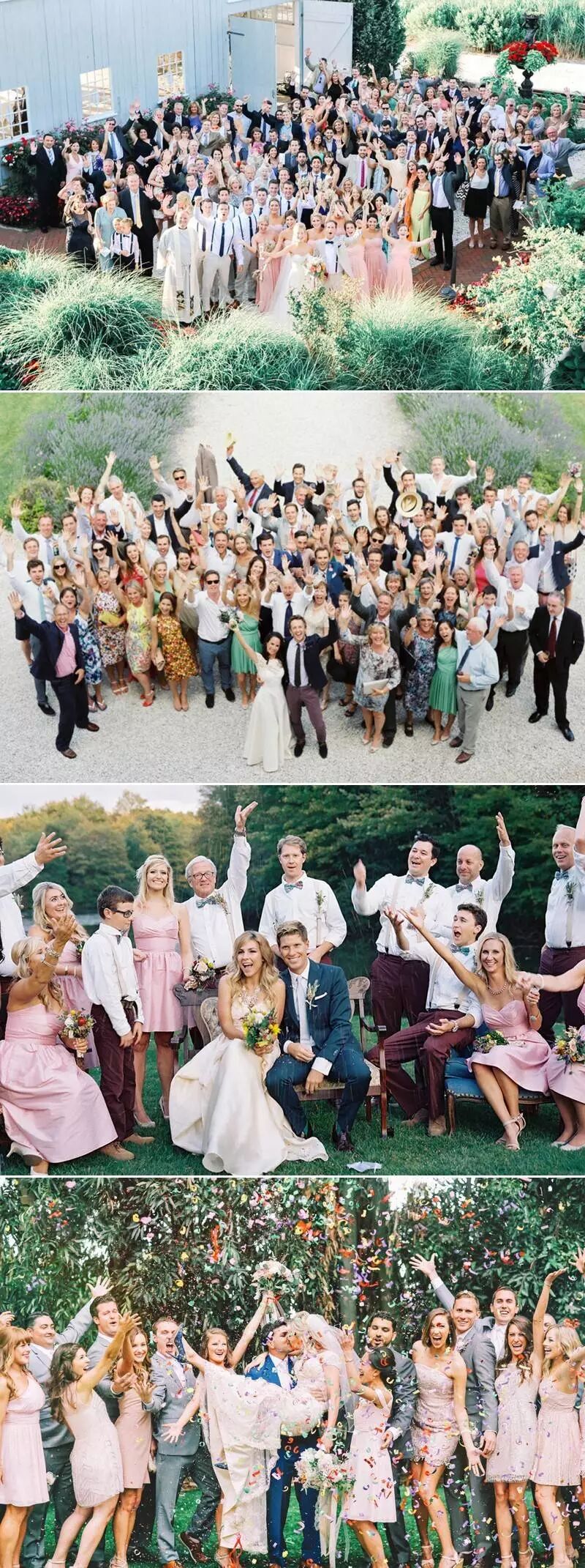 我见到的婚礼集体照,99%是亲朋好友与新人站在主舞台上排成一列或几列拍的。太无趣了!参照以下POSE,让婚礼集体照也充满爱和幸福吧。