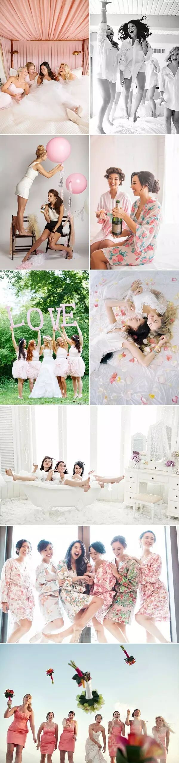 可以提前给伴娘准备好晨袍、高跟鞋、手捧花,为伴郎准备好西装、领结、皮鞋,以及各种拍照小道具。