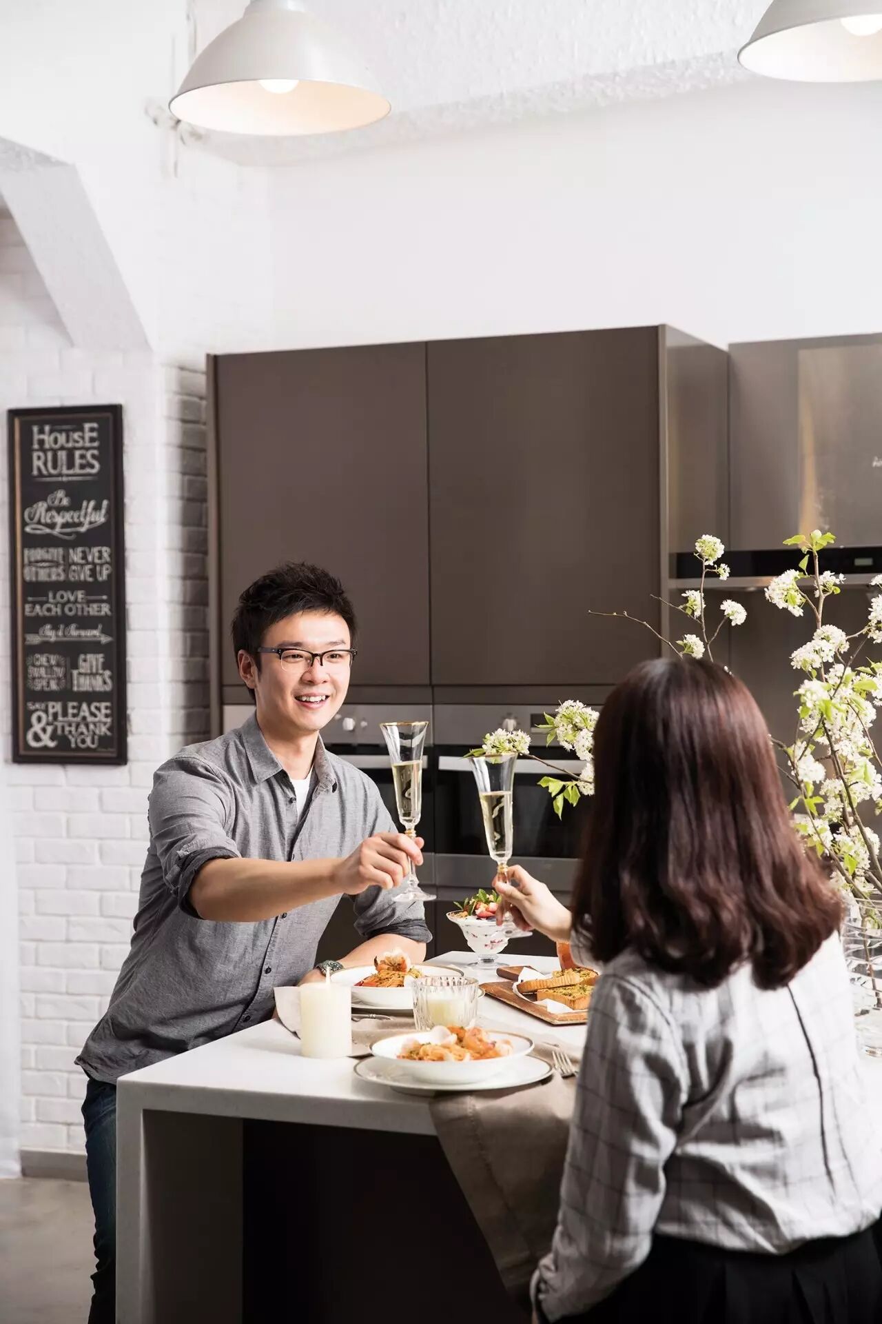 除了精心准备料理,第一餐用的餐具也藏着 Alvin的用心,颜色清爽,线条流畅的简约风格餐具,不仅适合于婚宴上,更适合出现在年轻小两口婚后的餐桌上,是平凡却有爱的新生活的开始。