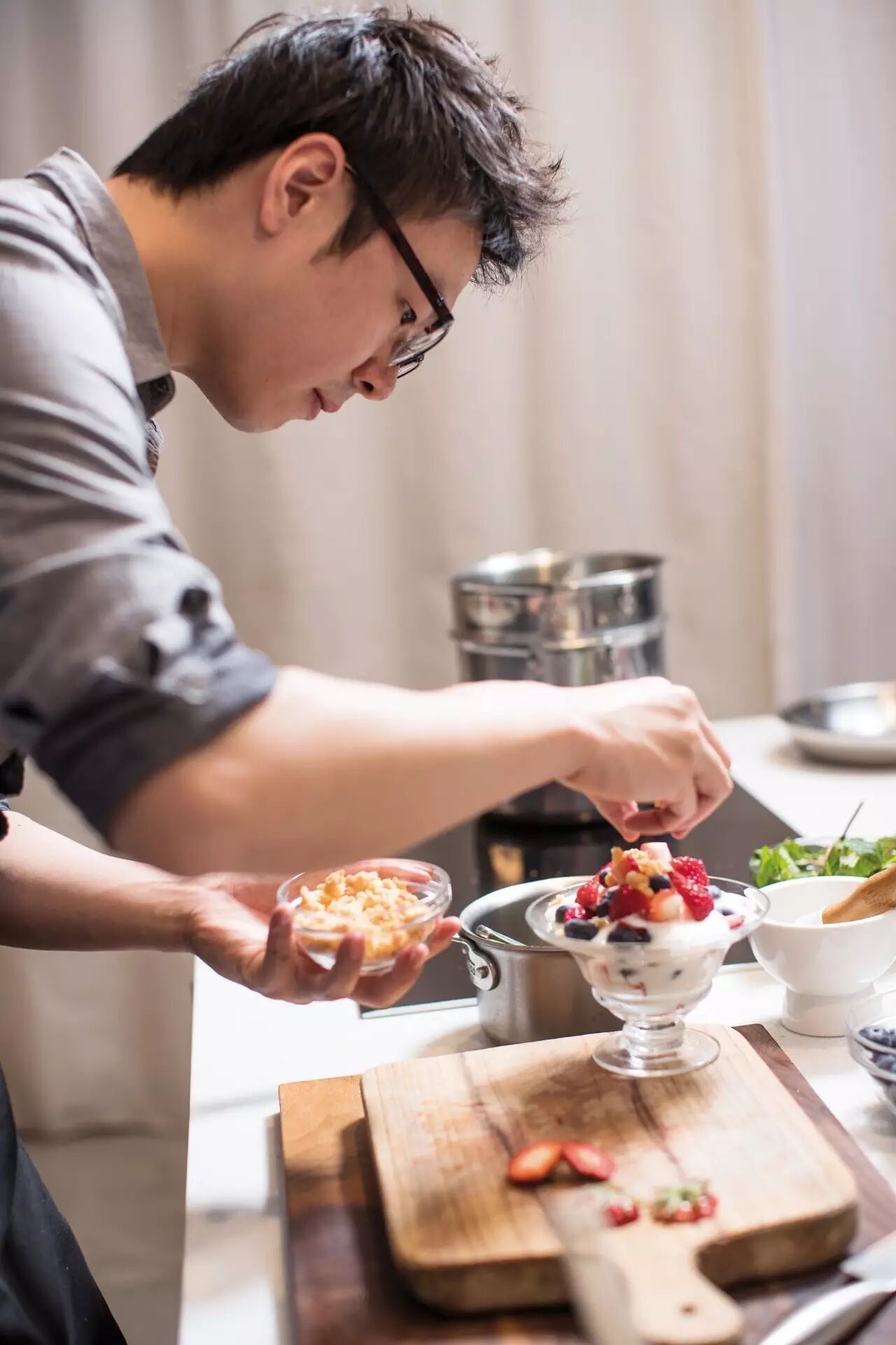 最近在微信上很火的“晓菜”公众号以及料理教室,就是年轻奶爸 Alvin最得意的事。他的梦想是“能让人人会做菜”。于是,我们邀请他为乐活婚期的“婚后第一餐”设计一份餐桌菜式。