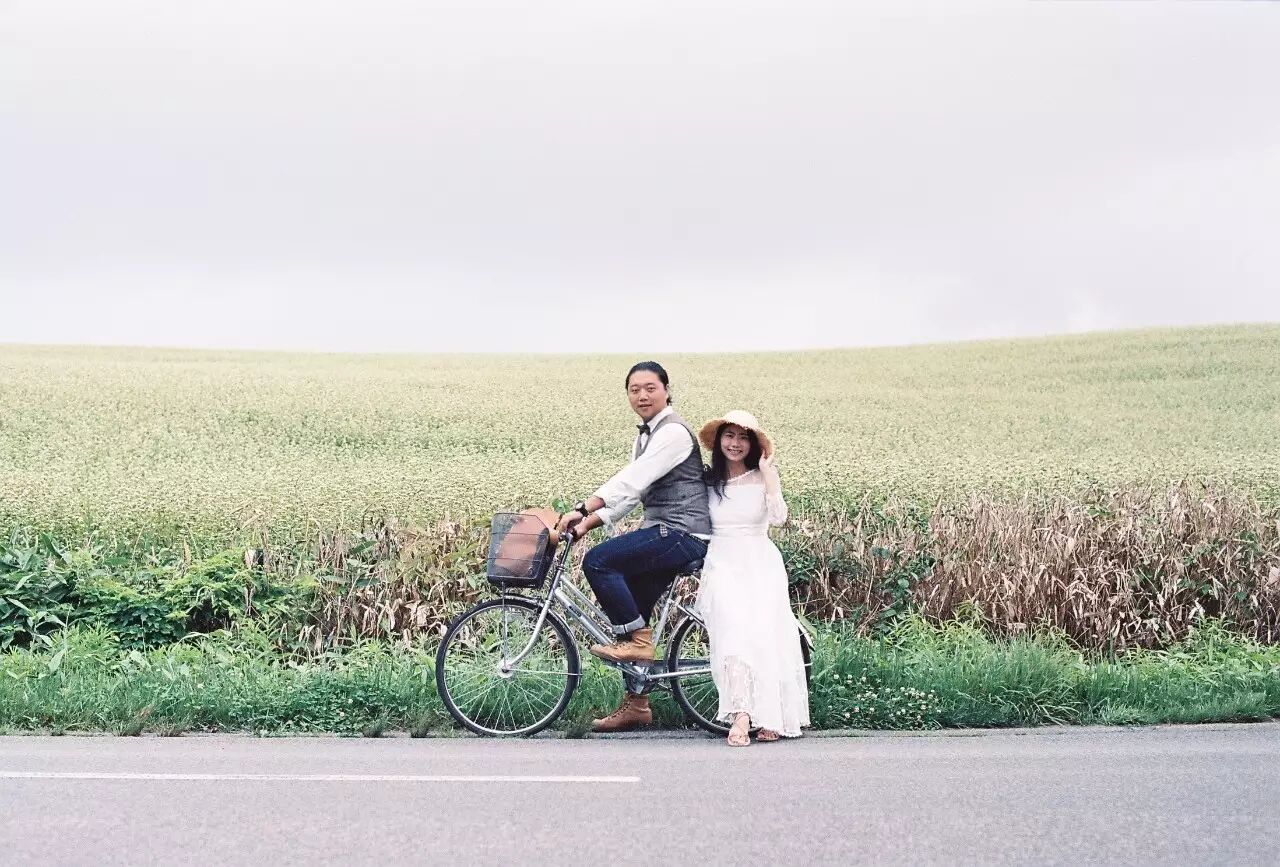 结婚了,婚纱照都是不一样的方式,大笑不愿千篇一律,拉着老婆一起去日本,随身只带一件轻婚纱,就以“自拍”来收集两人的回忆,边走边拍,“我俩注重的是日常情趣,而不是非要有个固有形式。”受大笑影响,大绵也喜欢上了美式自由风,还带一点狂野,这和日本的拘谨之气正好形成了强烈冲击。