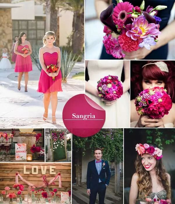 浓郁的酒红色是很多新人的最爱,让人感受到异国的深情,它让人感受到乡村的朴实情调,同时酒红色的伴娘服也能让你的婚礼显得更加大气明媚。