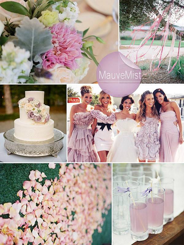 2014年最受关注的流行色无疑是兰花紫,从粉紫色的兰花中汲取的兰花紫色,PANTONE对兰花紫的定义是迷人的、神奇的和有些神秘的。在婚礼上把兰花紫与雾紫色搭配,将其与同色系不同深浅的色彩搭配,能收获意想不到的效果,同时也为婚礼注入更多的迷人元素。