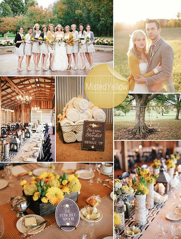 想象一下闪闪发光的铝白色,它将让你成为婚礼的大赢家,这种颜色比较接近圣诞节,结合铝白色和迷离黄色调,将会为你的婚礼带来不一样的时尚情调。