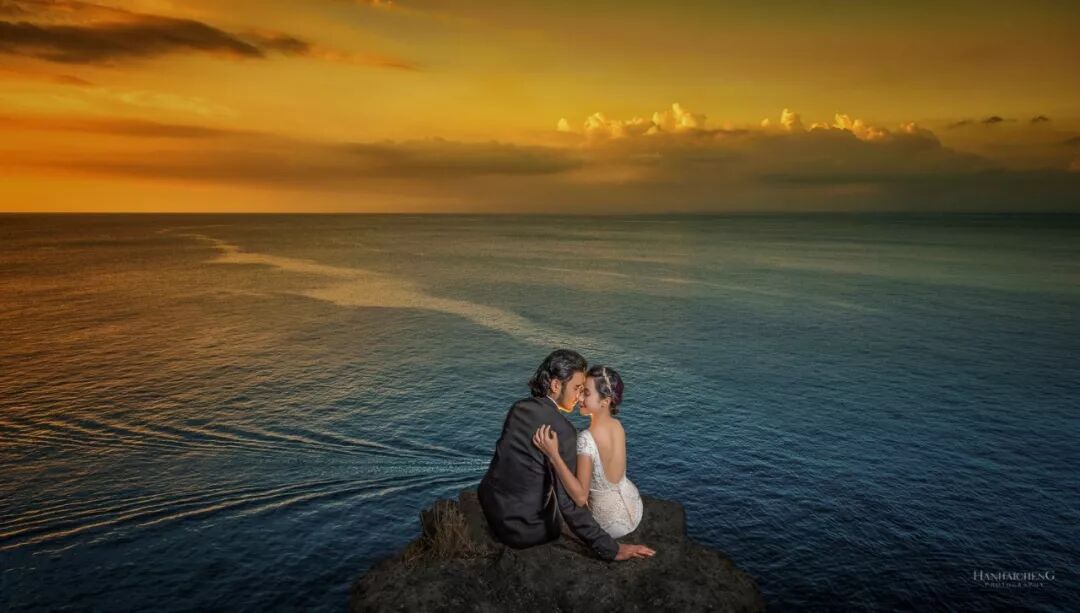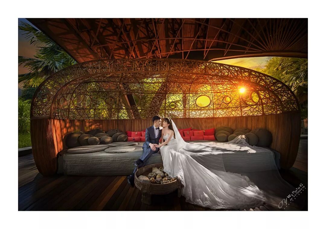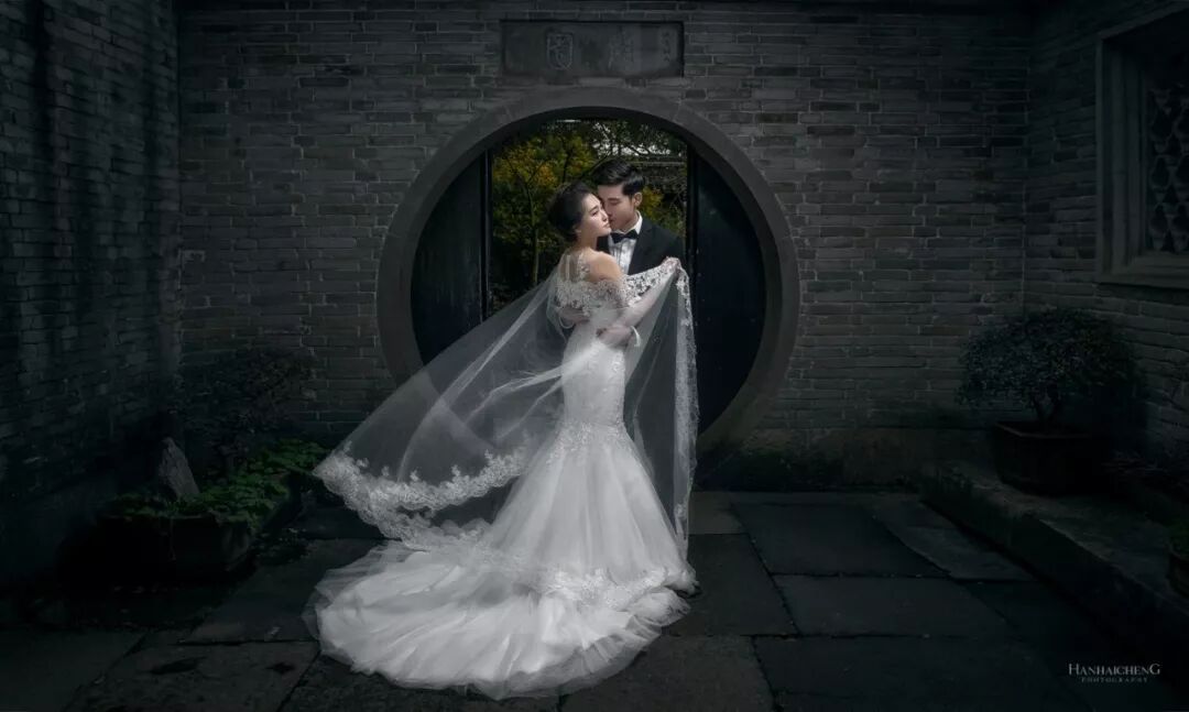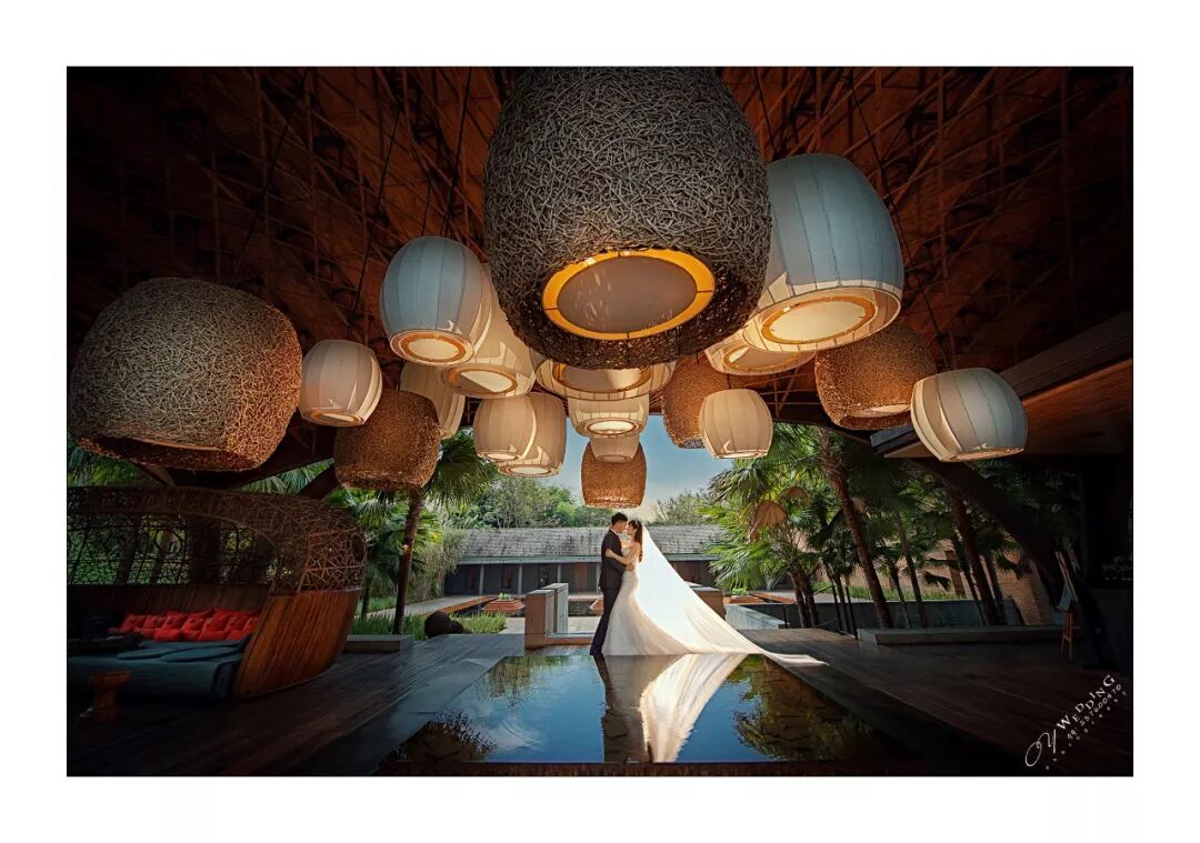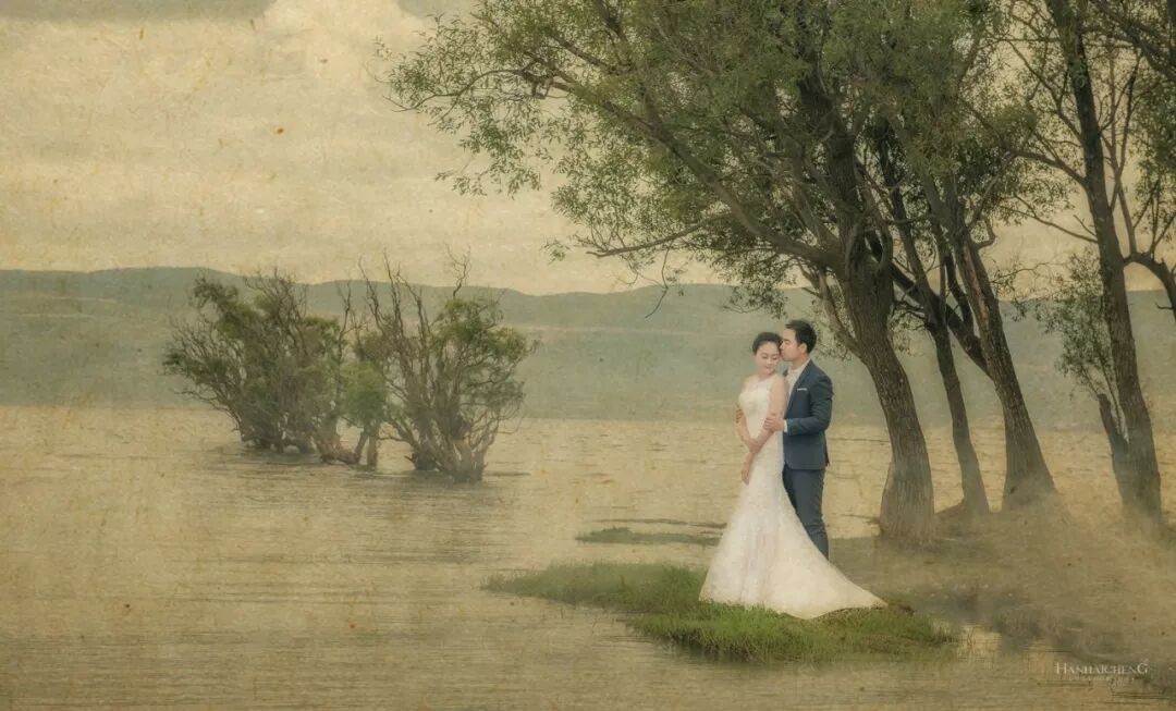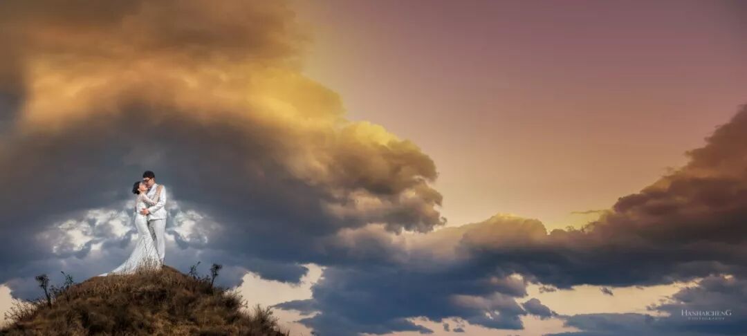 旅拍婚纱中,尤其是景大人小的作品,喜欢用闪光灯照亮新人,重点突出人物主题。