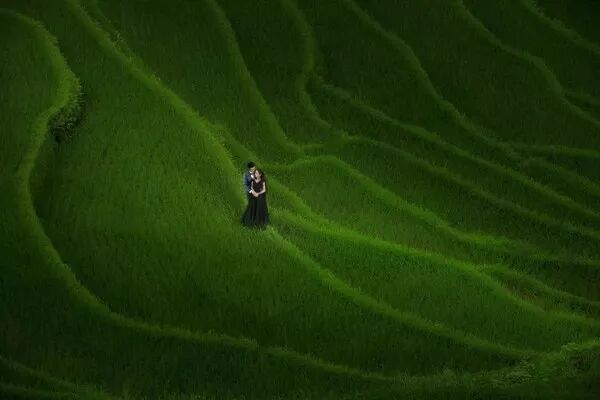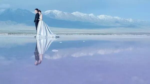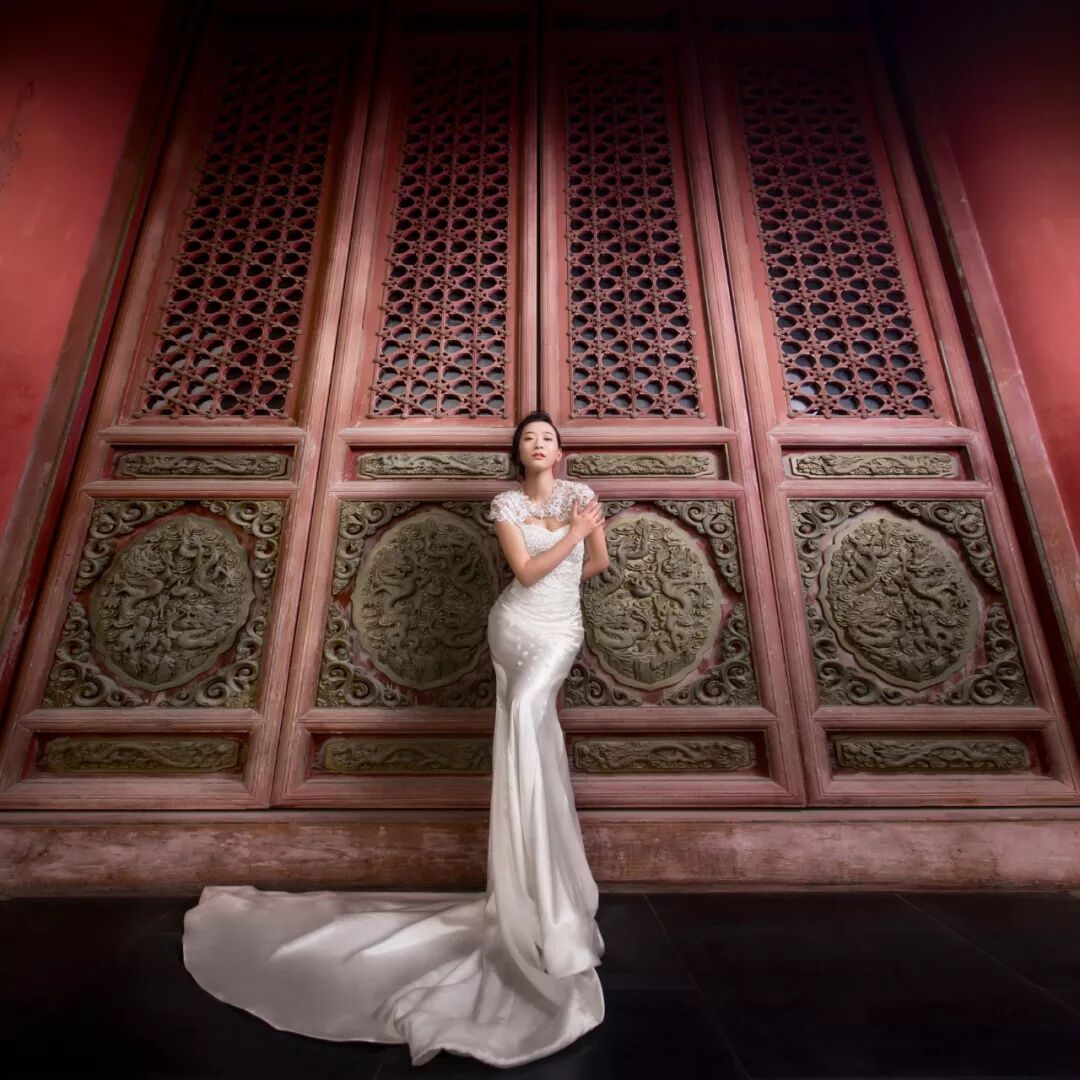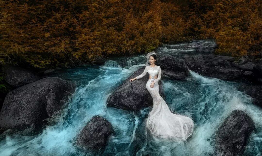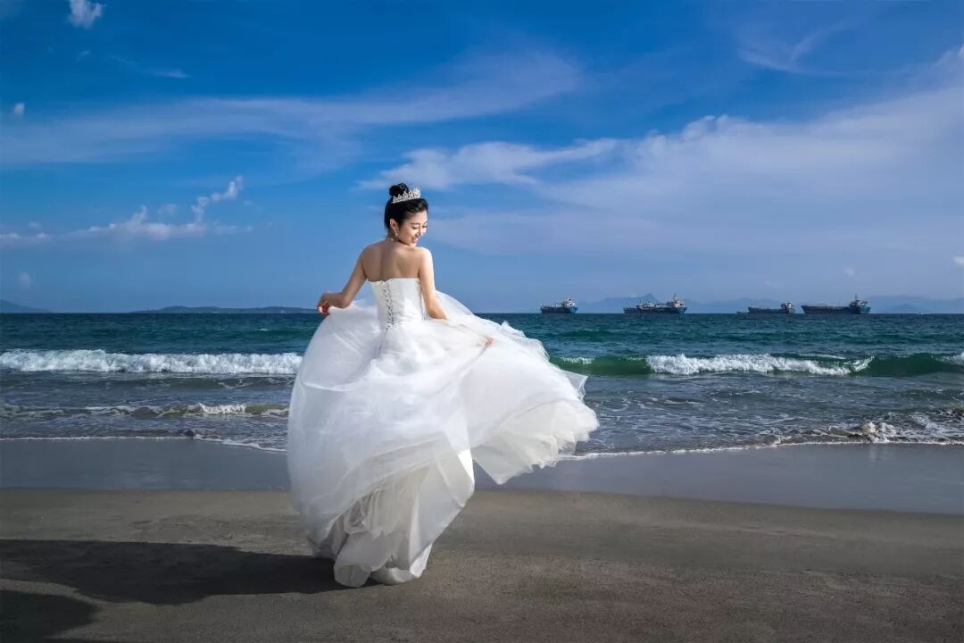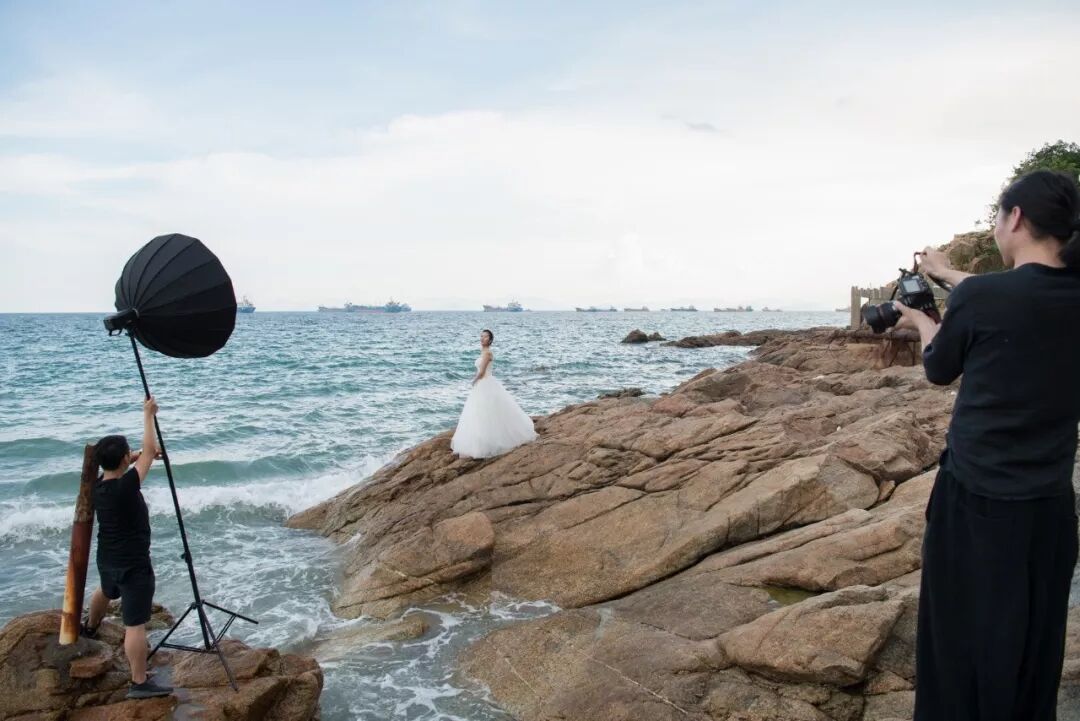 旅拍婚纱中,尤其是景大人小的作品,喜欢用闪光灯照亮新人,重点突出人物主题。