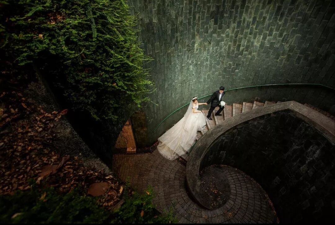 不同风格的建筑,门、窗、楼梯等场景都是很好表达情感故事的地方,比如旋转楼梯上,有更大的视觉冲击力,而且在旋转楼梯上拍摄的话更容易拍摄出抽象的效果,我们在拍摄时要巧用楼梯内的线条作为引导线引向我们要表达的视觉主体,可以用来拍摄First Look的故事。