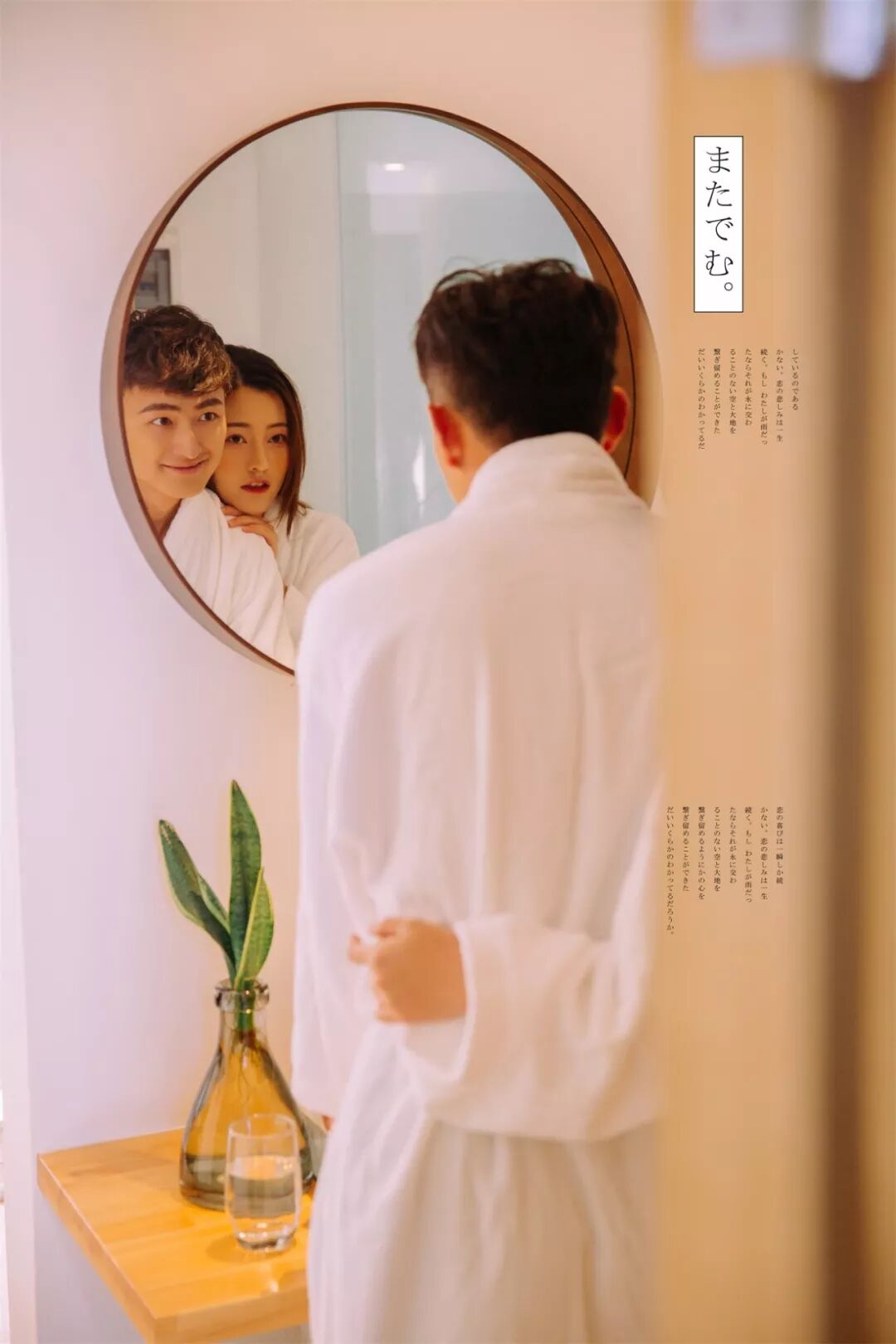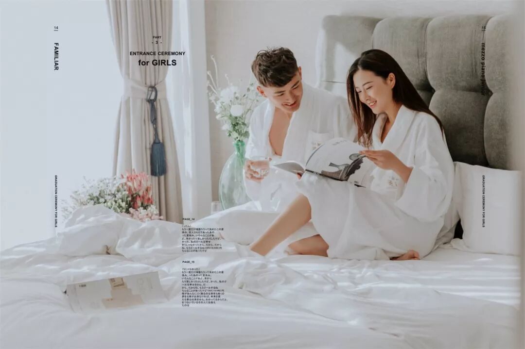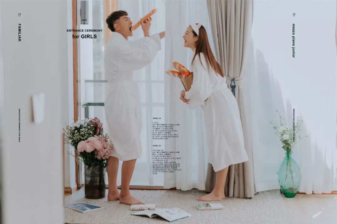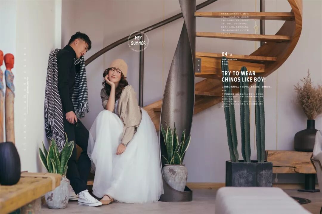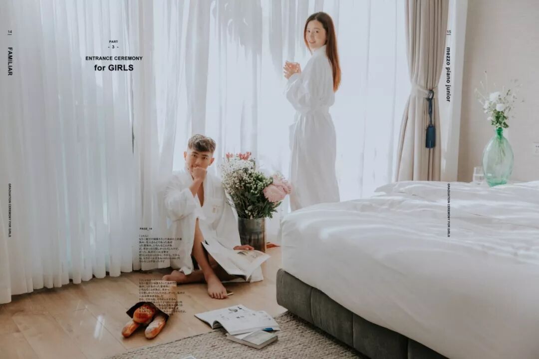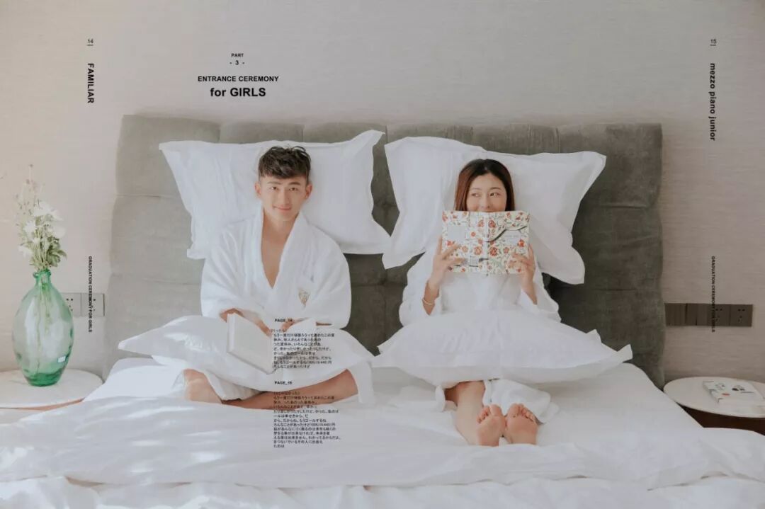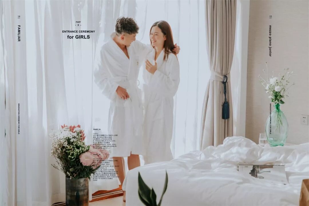 至于男士: 提前一周理好发,临出发时再剃胡子,然后可以准备些带的东西。结婚戒指一定要戴,还可以带漂亮的项链耳环,最好是粗大明显的(要看好别丢了),譬如珍珠项链,细链子会被要求摘去;不带也可以,店里会提供。戴眼镜的人可以自备好看的镜框,拍摄的时候不允许戴眼镜,而店里预备的镜框未必适合你的脸型。