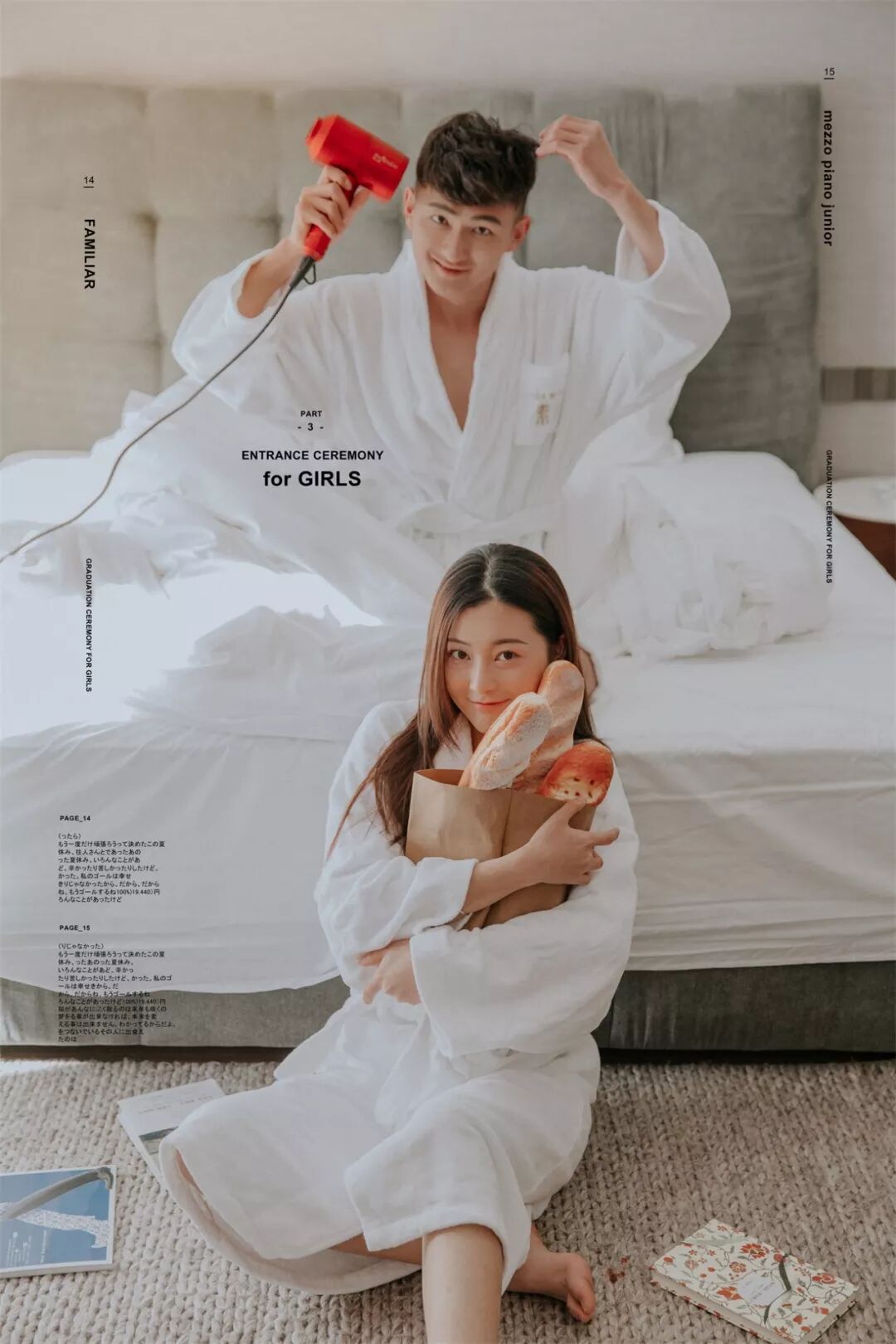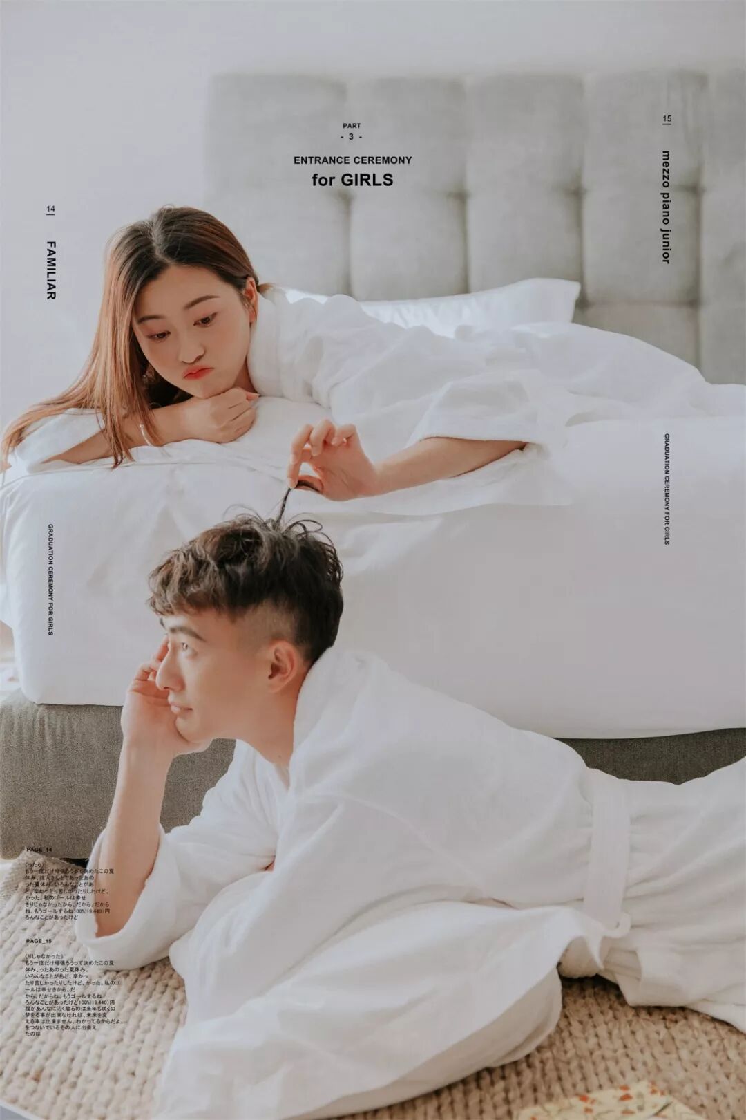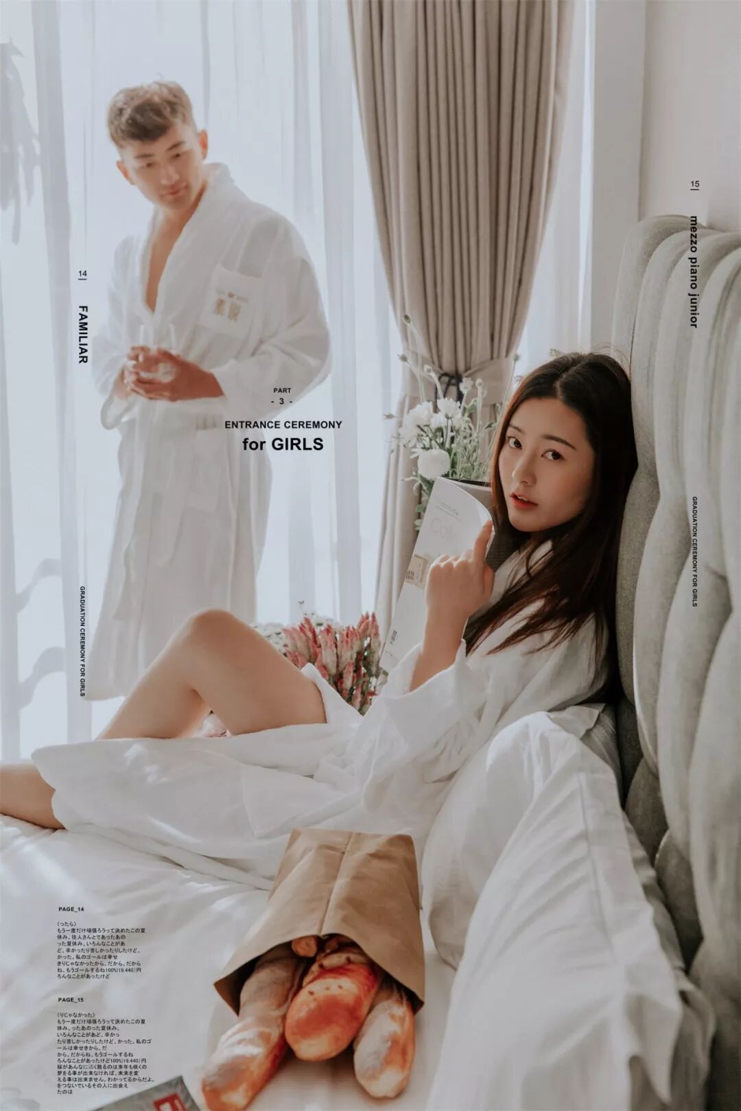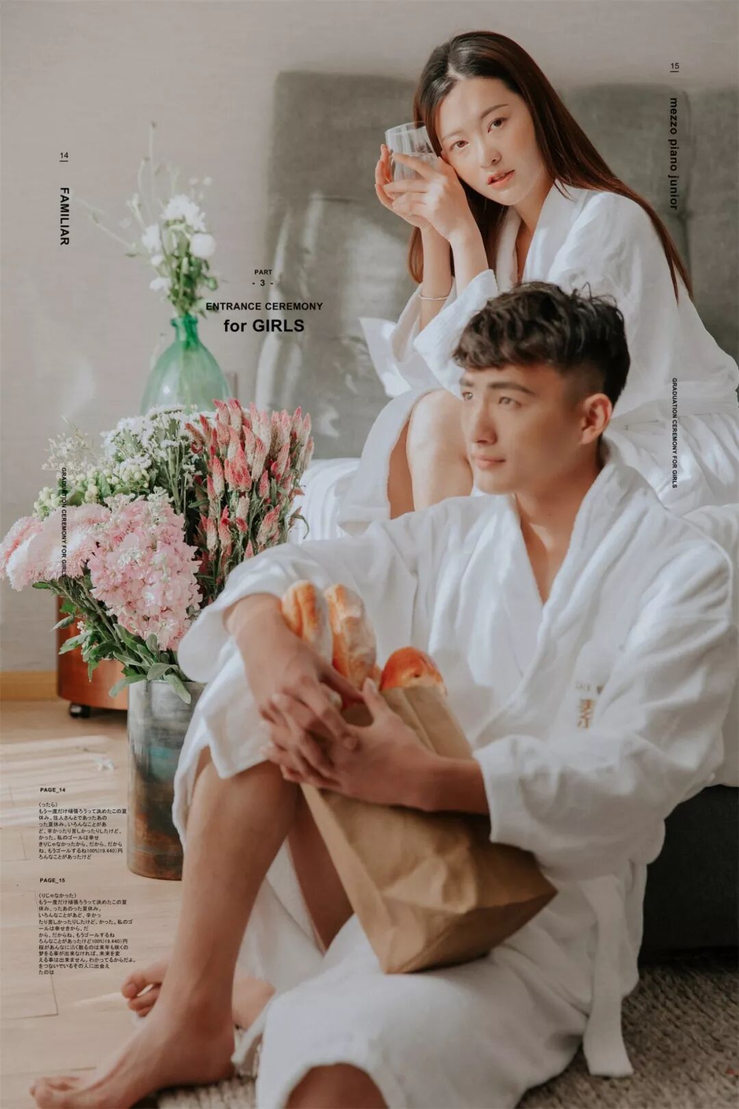 至于男士: 提前一周理好发,临出发时再剃胡子,然后可以准备些带的东西。结婚戒指一定要戴,还可以带漂亮的项链耳环,最好是粗大明显的(要看好别丢了),譬如珍珠项链,细链子会被要求摘去;不带也可以,店里会提供。戴眼镜的人可以自备好看的镜框,拍摄的时候不允许戴眼镜,而店里预备的镜框未必适合你的脸型。