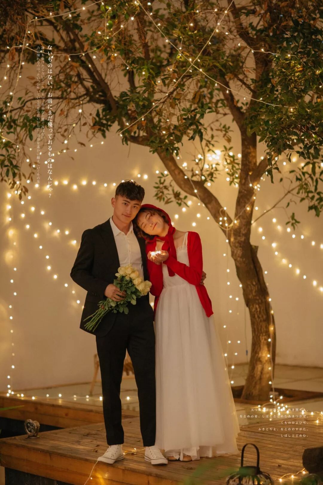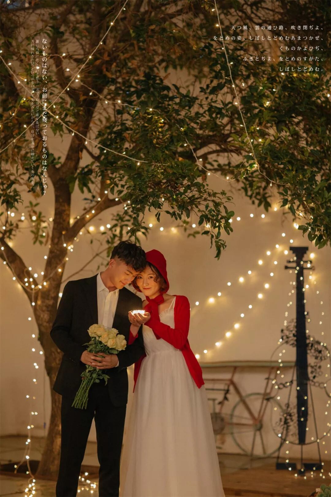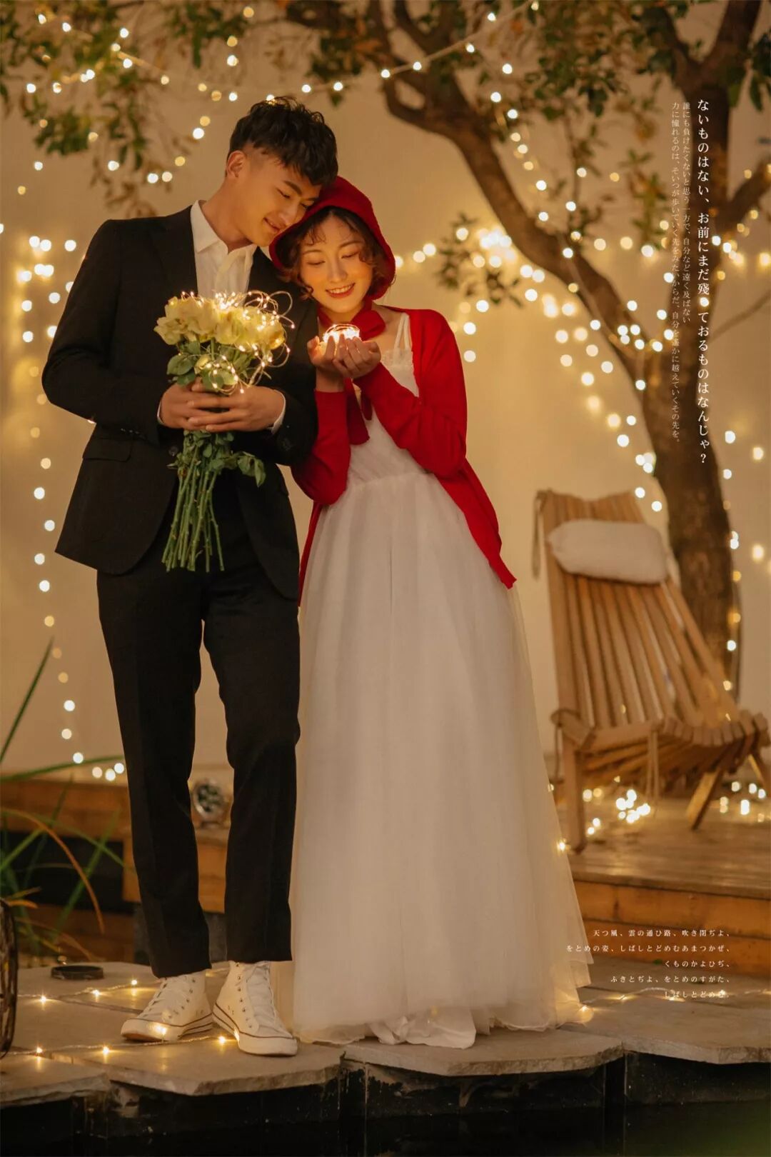 当然,如果执意要外拍的话,除了带相机自己拍一些外,还可以准备一束鲜花,大朵的颜色艳丽的为好。