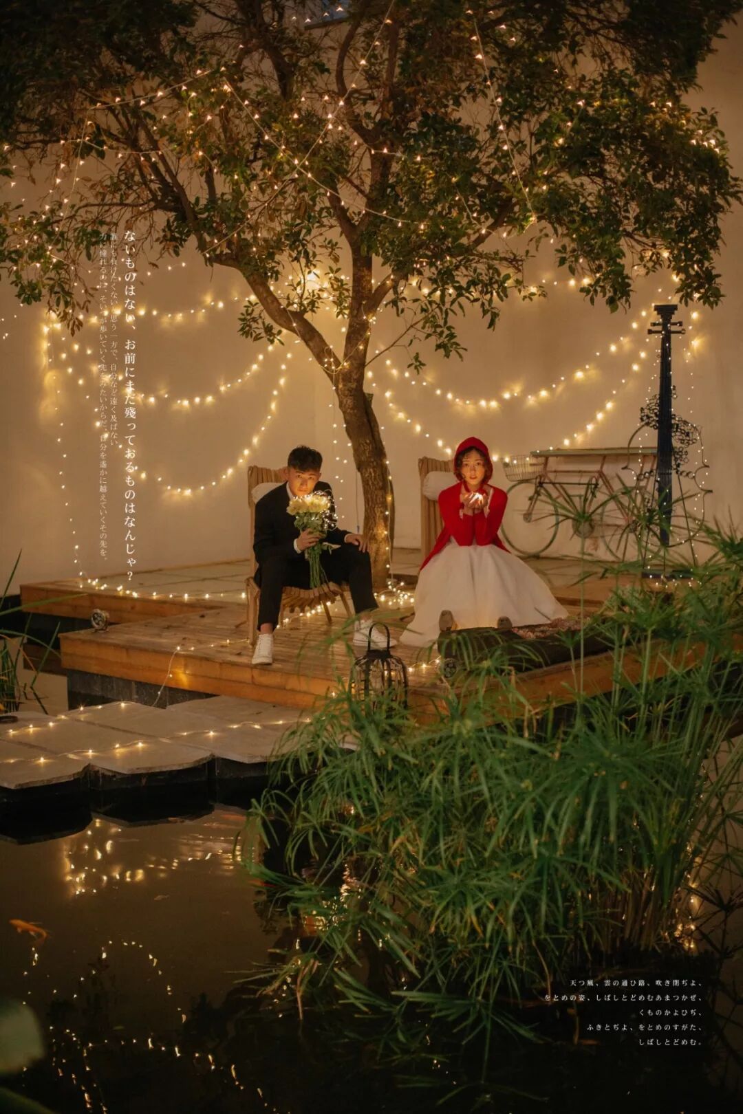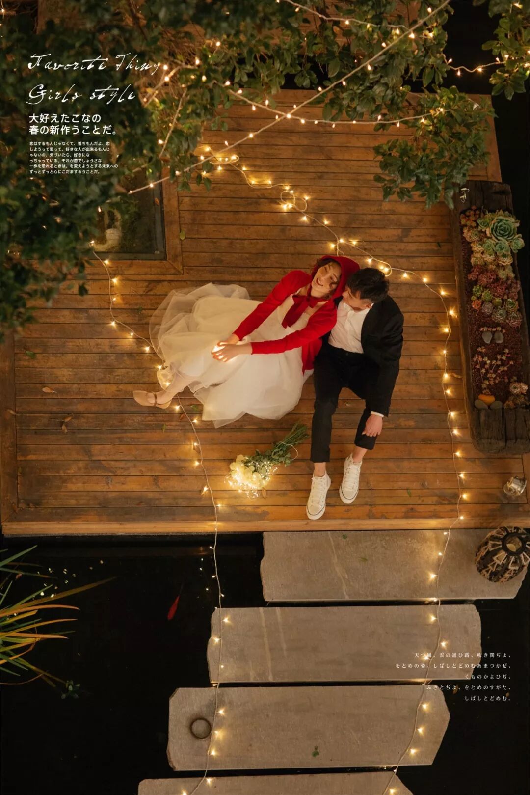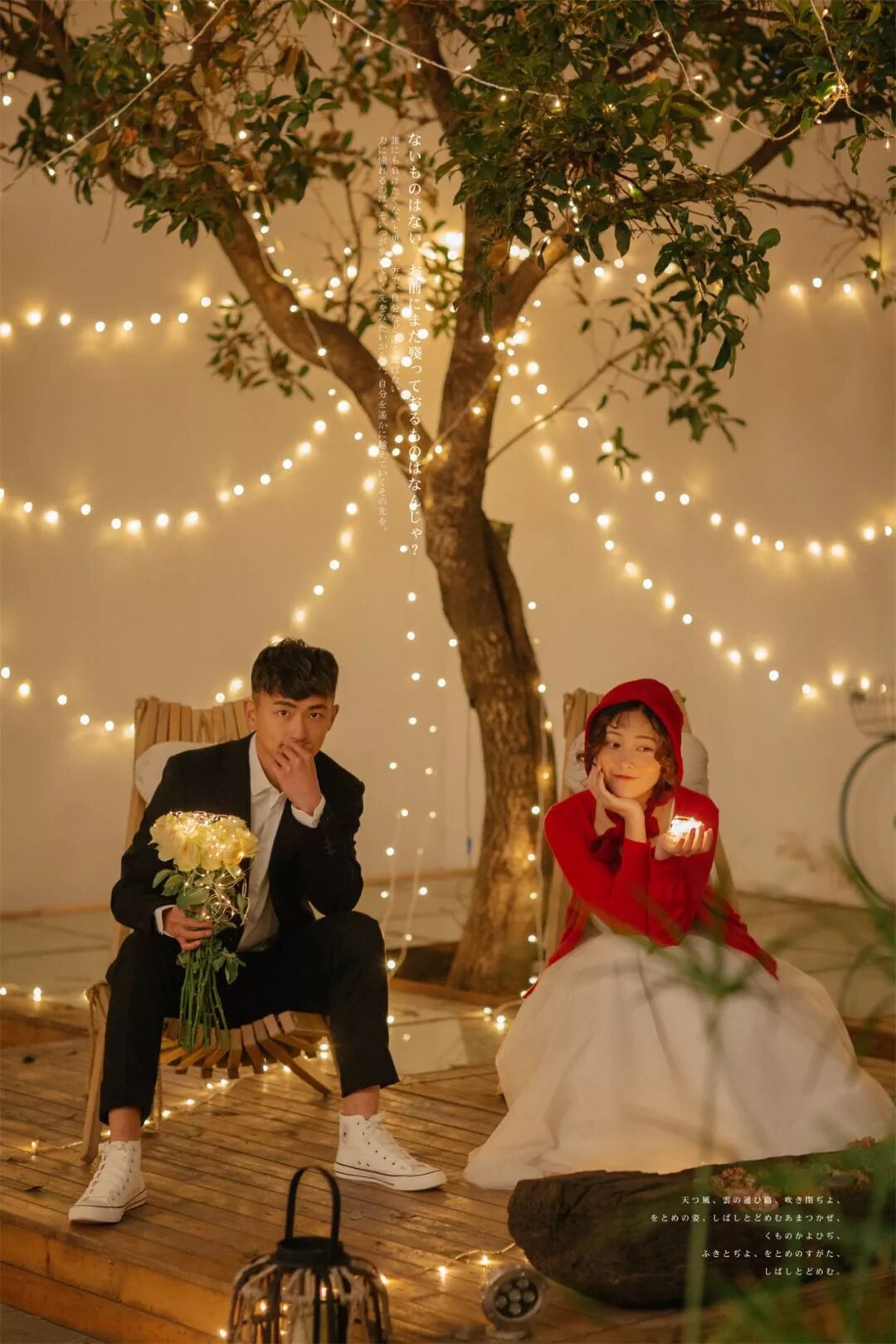 当然,如果执意要外拍的话,除了带相机自己拍一些外,还可以准备一束鲜花,大朵的颜色艳丽的为好。