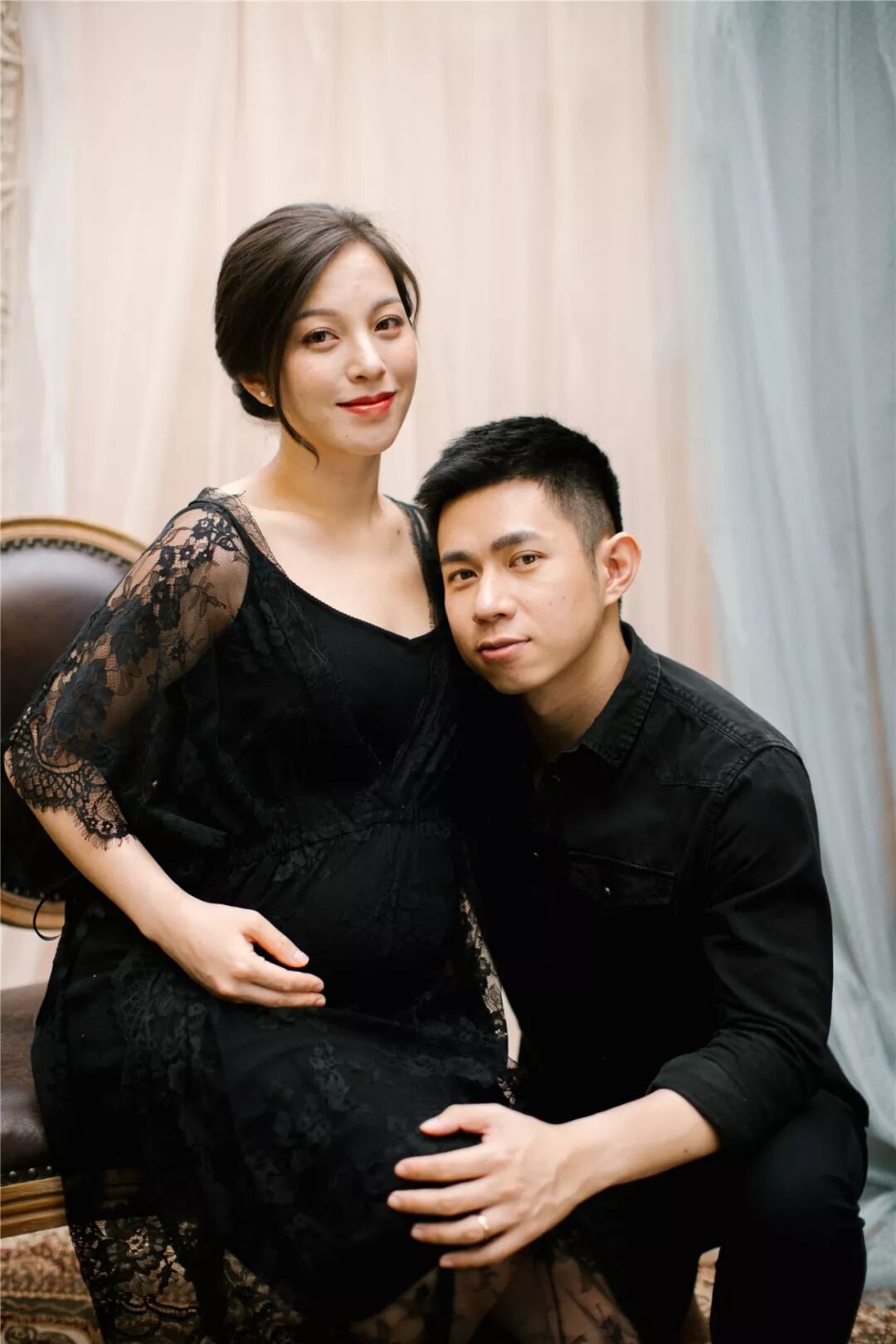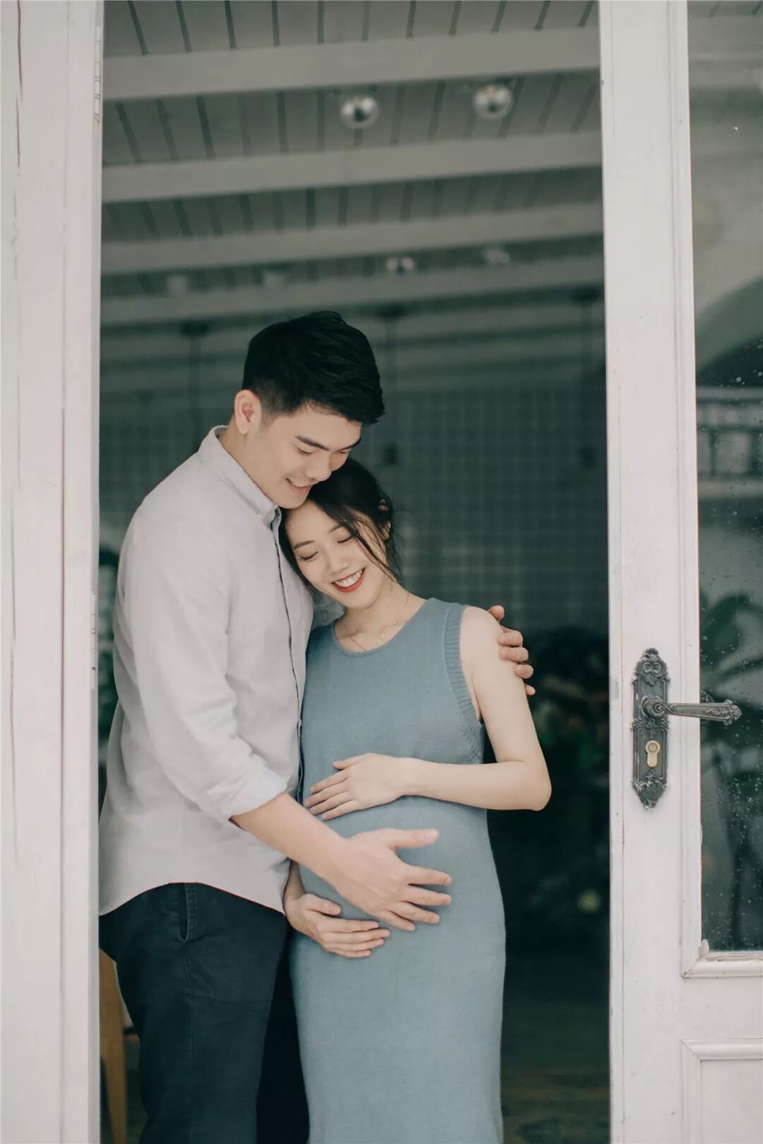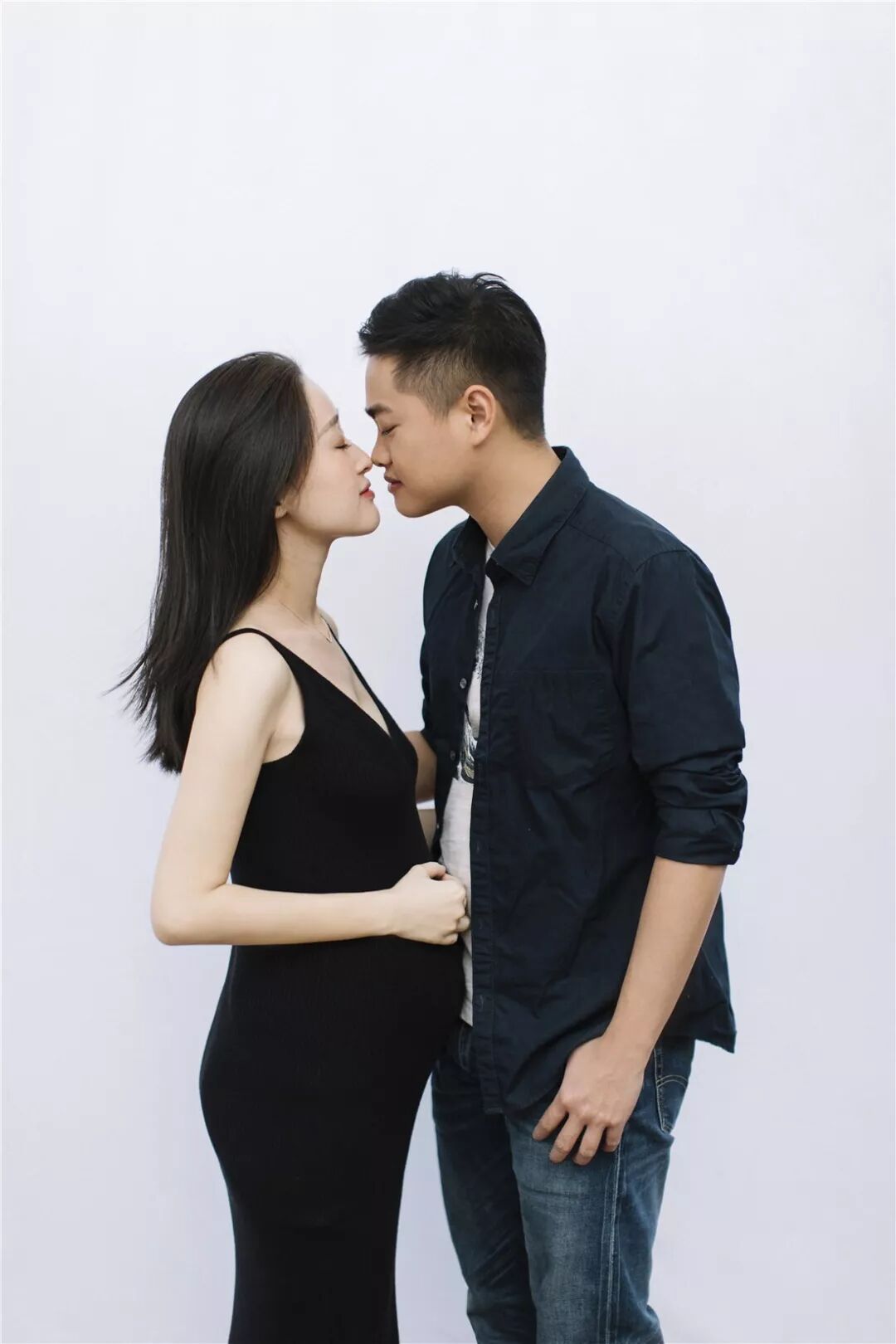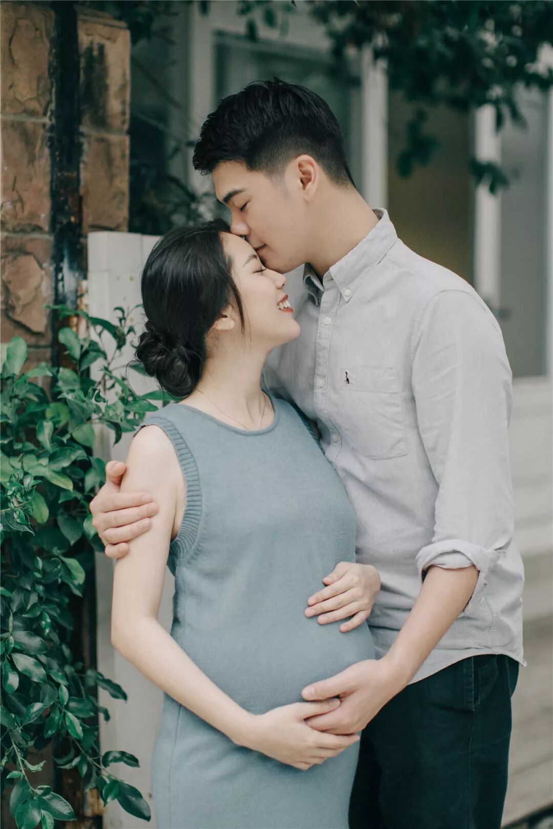孕照自然也少不了准爸爸的出境,所以男士服装一般建议选择简单百搭的款式,例如衬衣或T恤,尽量跟孕妈的服装颜色相呼应,不要有过于花哨的图案。