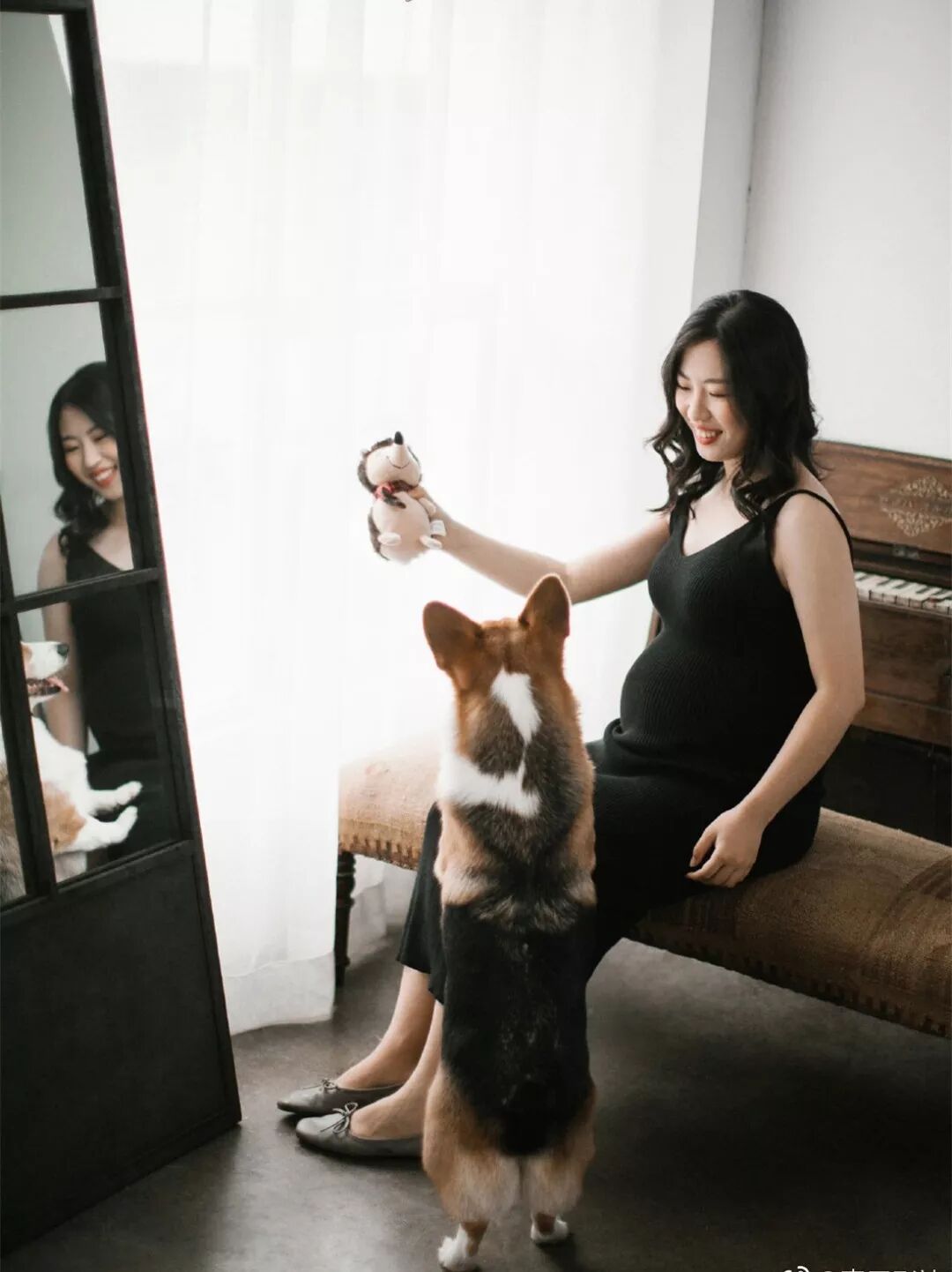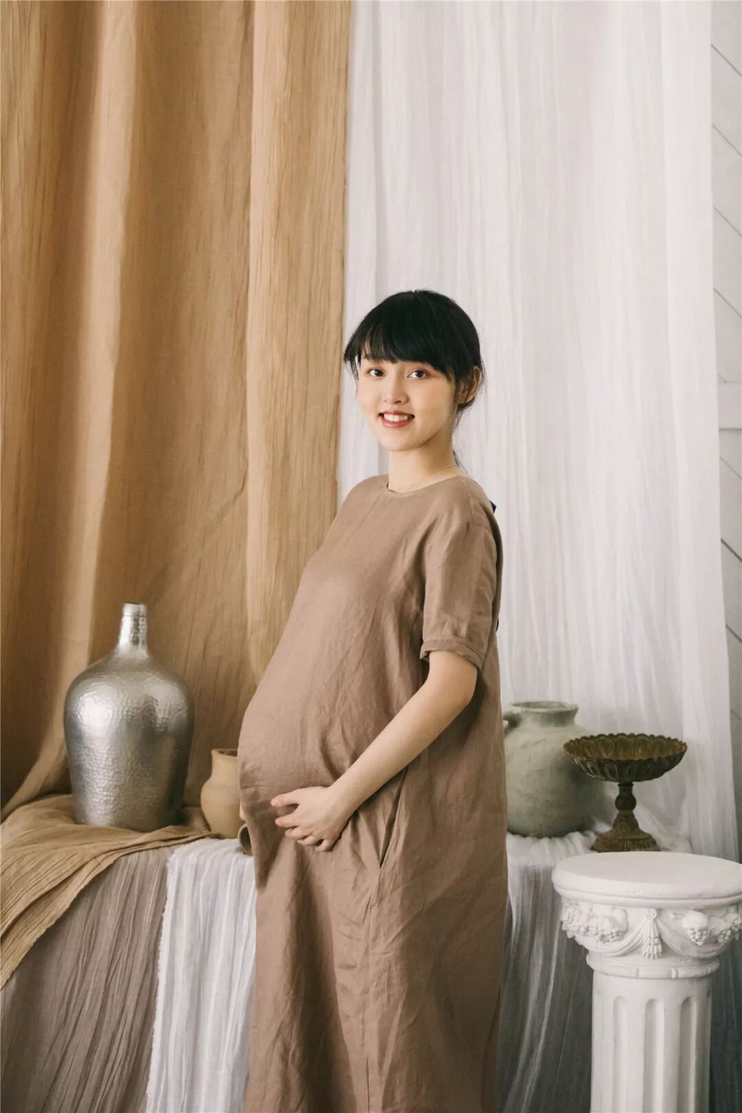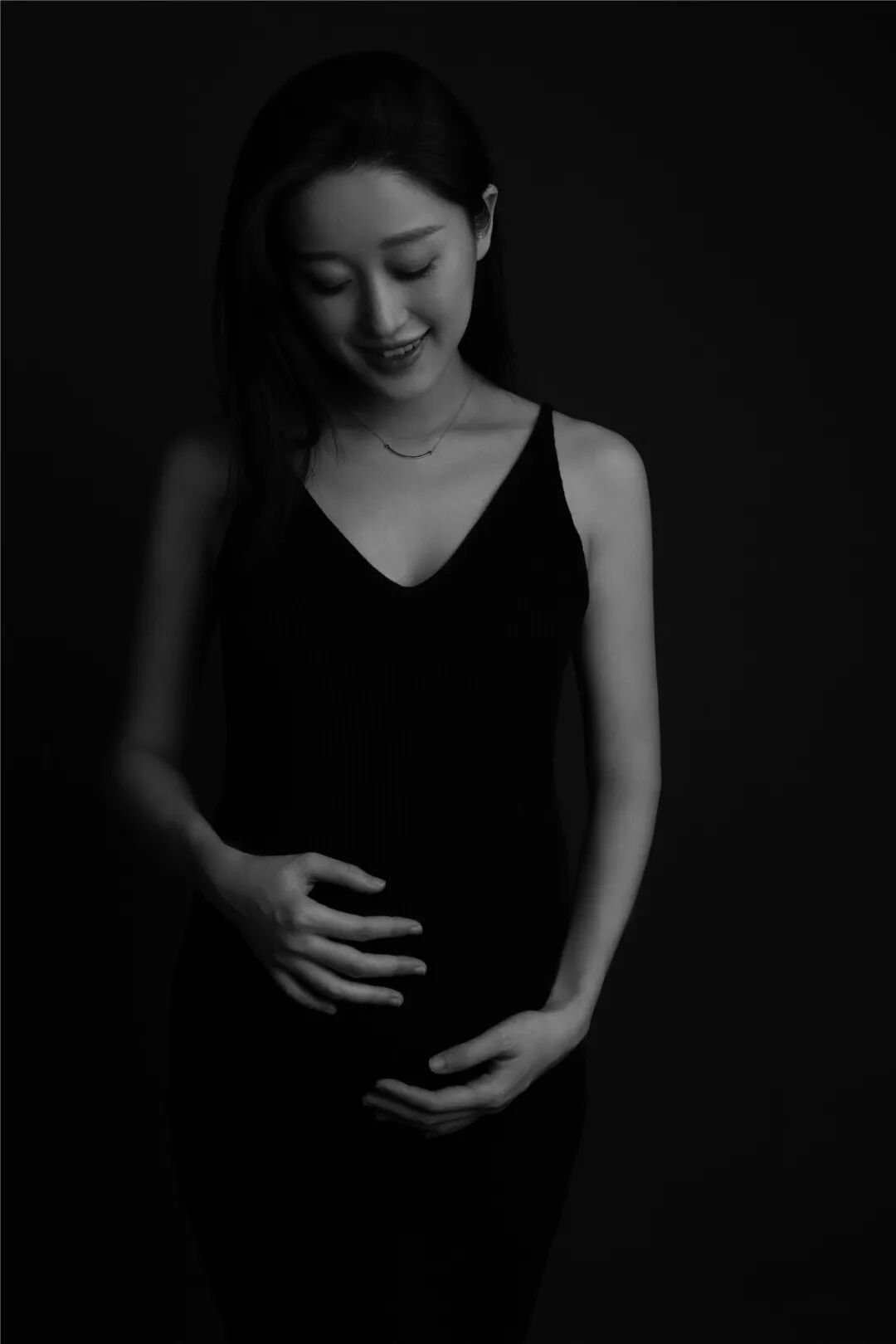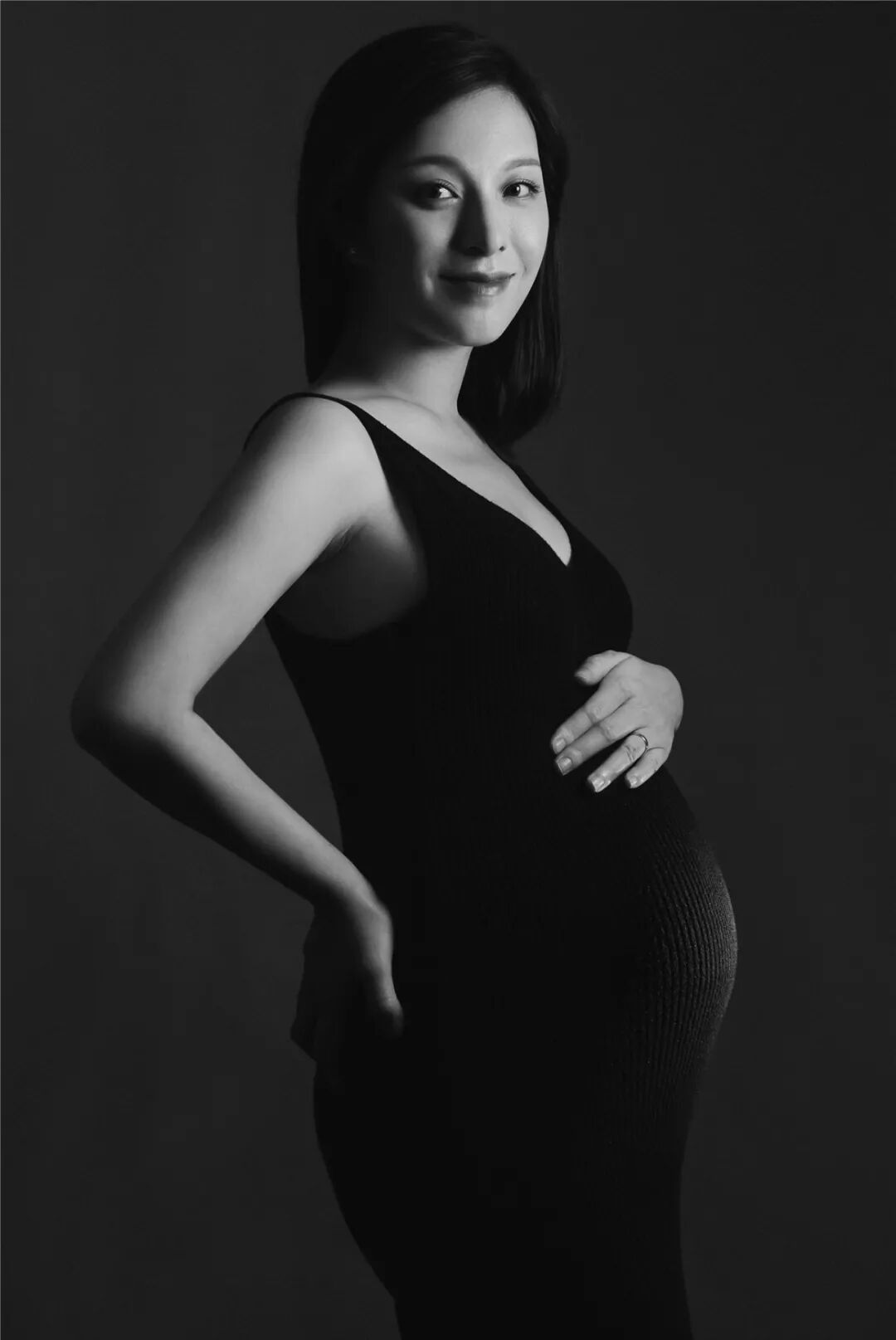 黑白影像交错,在岁月的检验下,体现美之本色。贴身素净的服装,显示孕妈咪专属的曲线美,在沉淀底色中彰显最美的姿态。