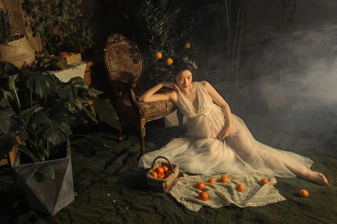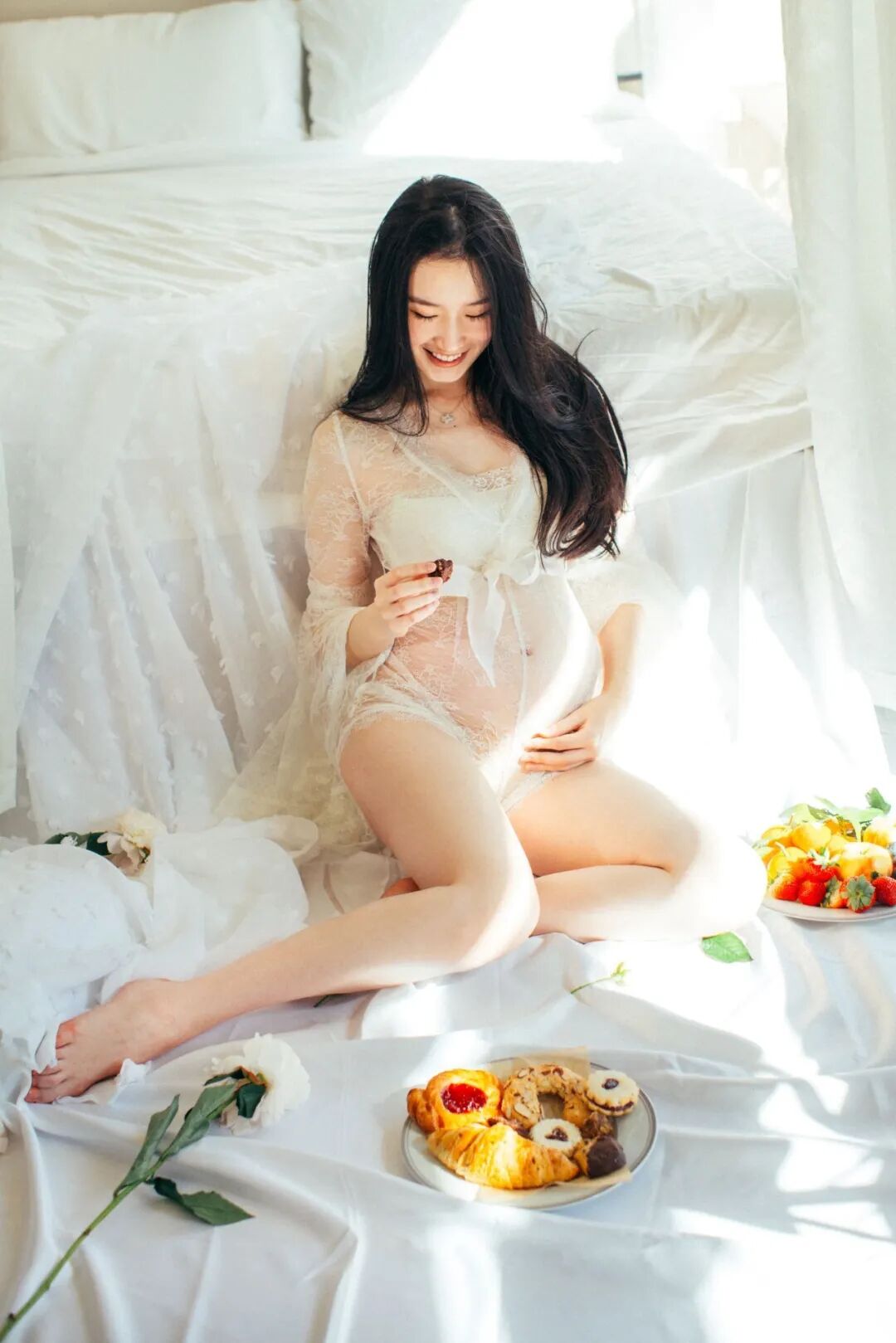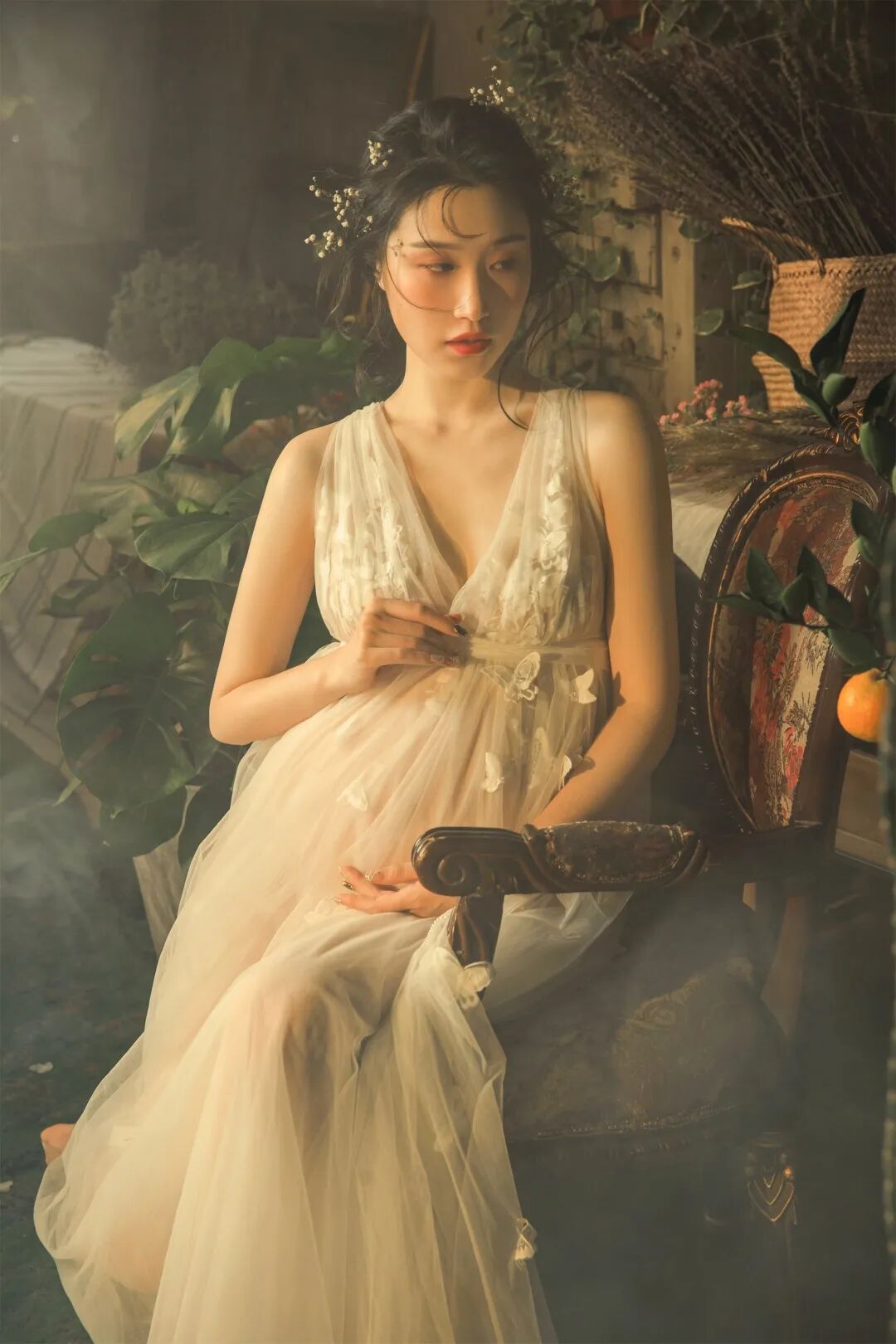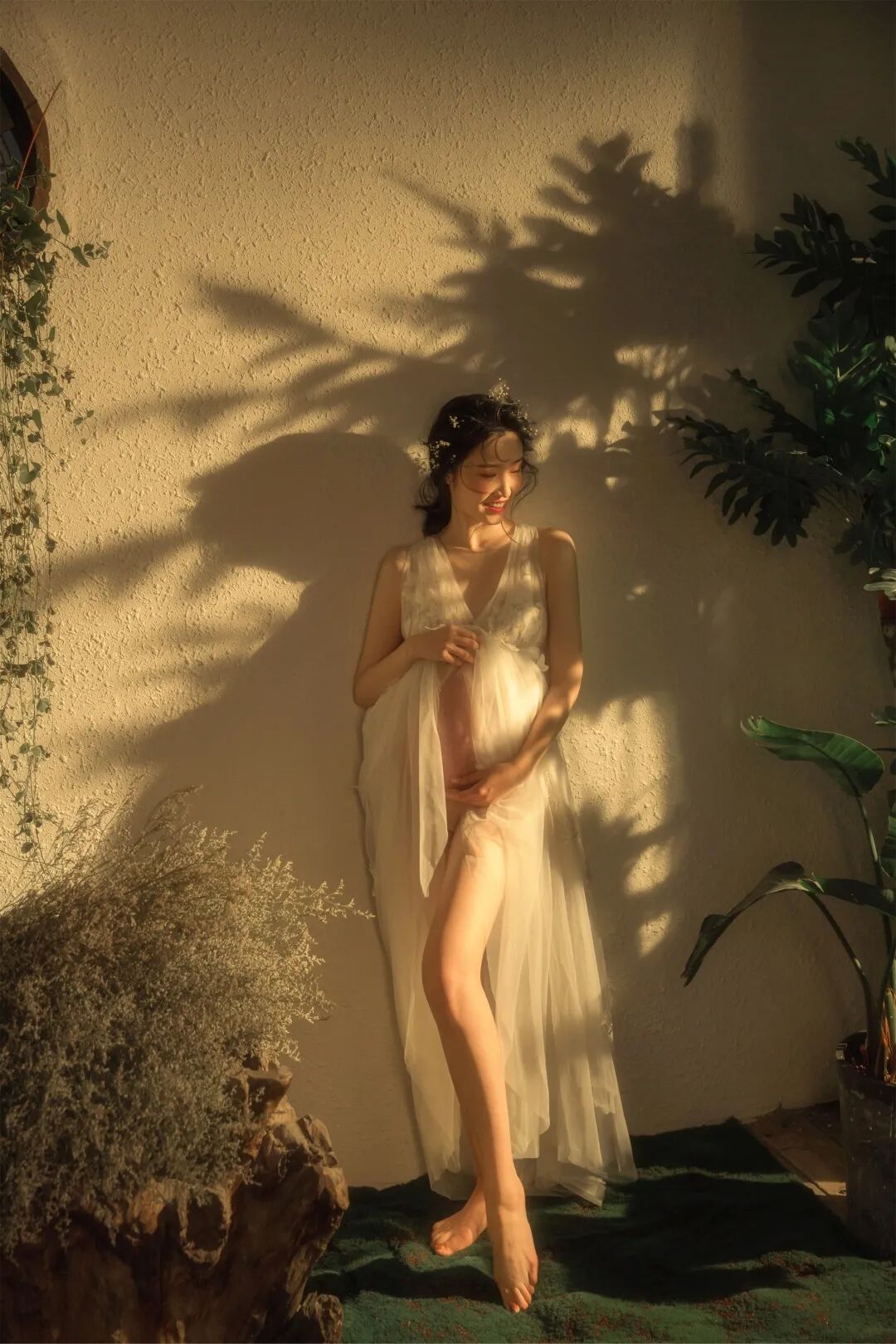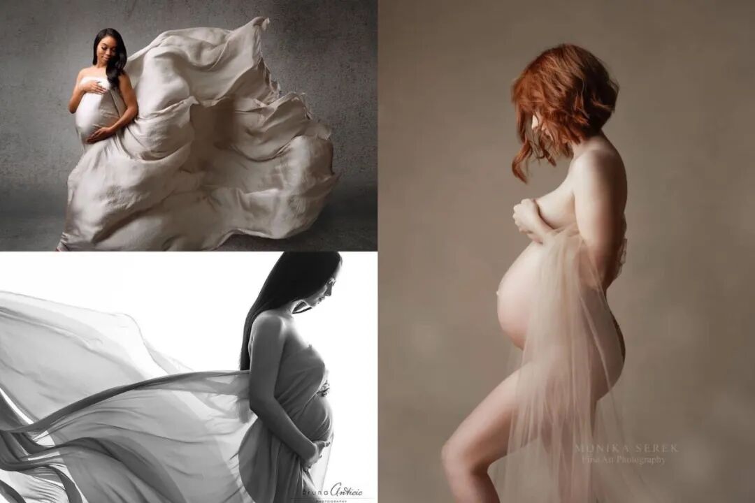 在真空状态下只用布裹住私密部位。很有现代舞的感觉,还原本真,展现身体最真实的状态。在ins搜图的时候还有一种国外的孕照更有流动感,是用拉紧的纱布勾勒出孕妇的线条。拍了不后悔系列。
