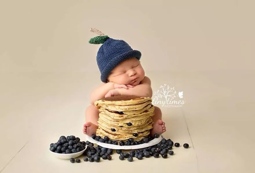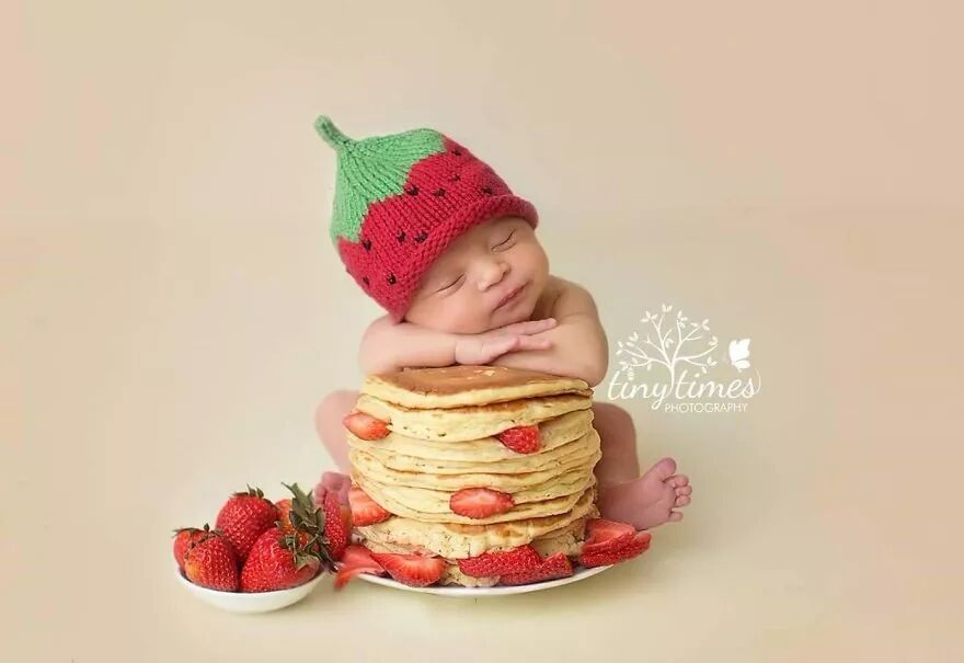 “我所需要的只是适合我的草莓和蓝莓煎饼,撒上巧克力粉的甜甜圈和桃华夫饼的婴儿。”这几张图中所有食物都是真实的!所有婴儿在拍摄时均有安全保障,同时父母也在现场。这些甜甜圈也是真的!