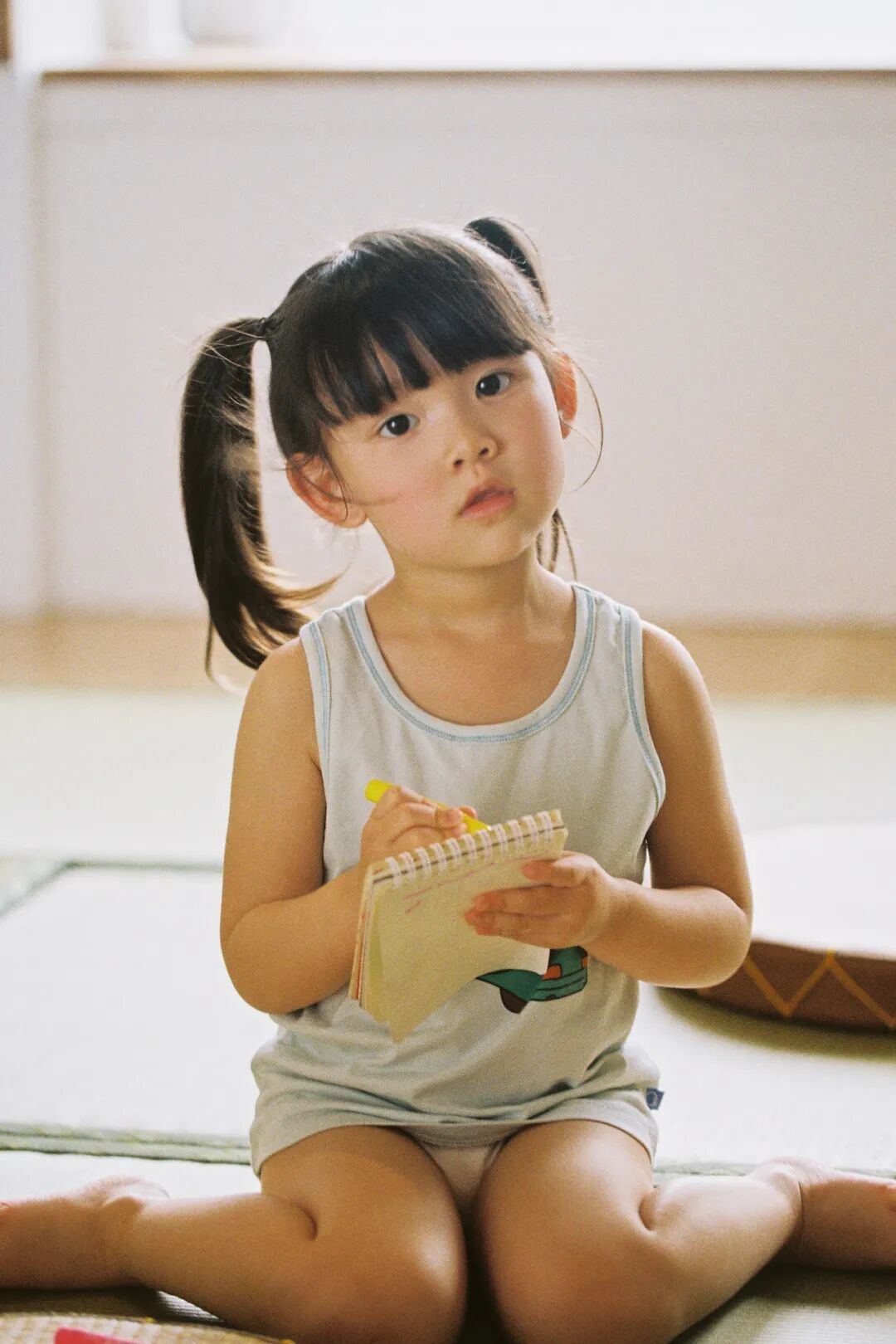 生活场景来源于生活,沙发、床、书桌等,但是作为拍摄场景,我们会考虑到画面的简洁性和孩子的参与性,必须要对生活场景进行提炼。既要有艺术作品的逻辑性,又要有生活场景的真实性——这里的真实不一定是具体场景元素的真实,而是整体情态和氛围的真实、不造作——让孩子融入场景中,并且与场景中的物品产生互动。