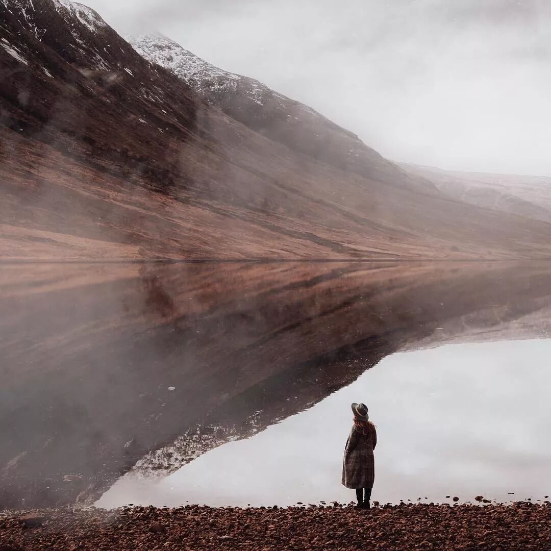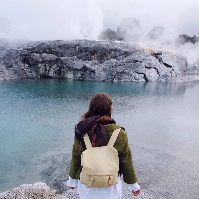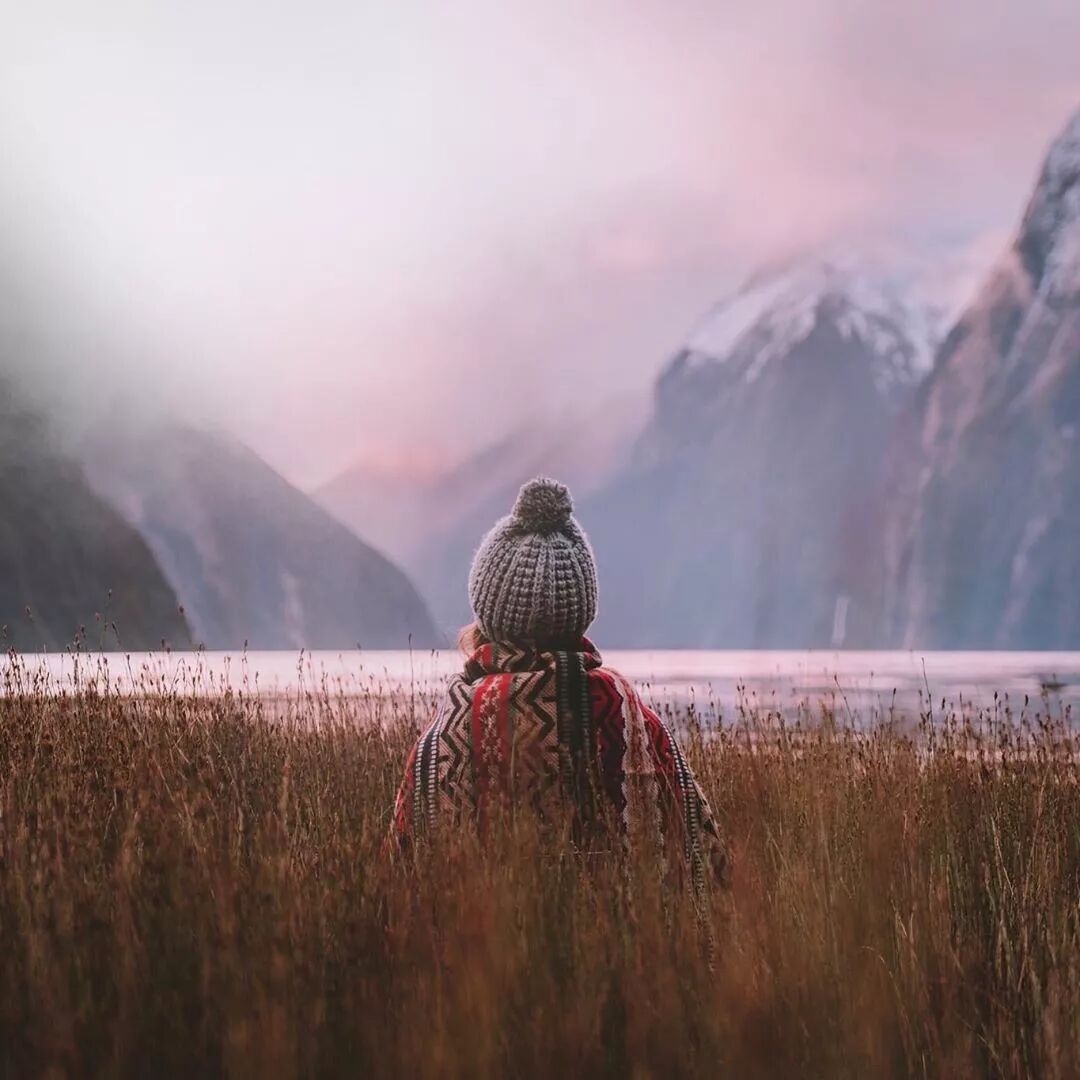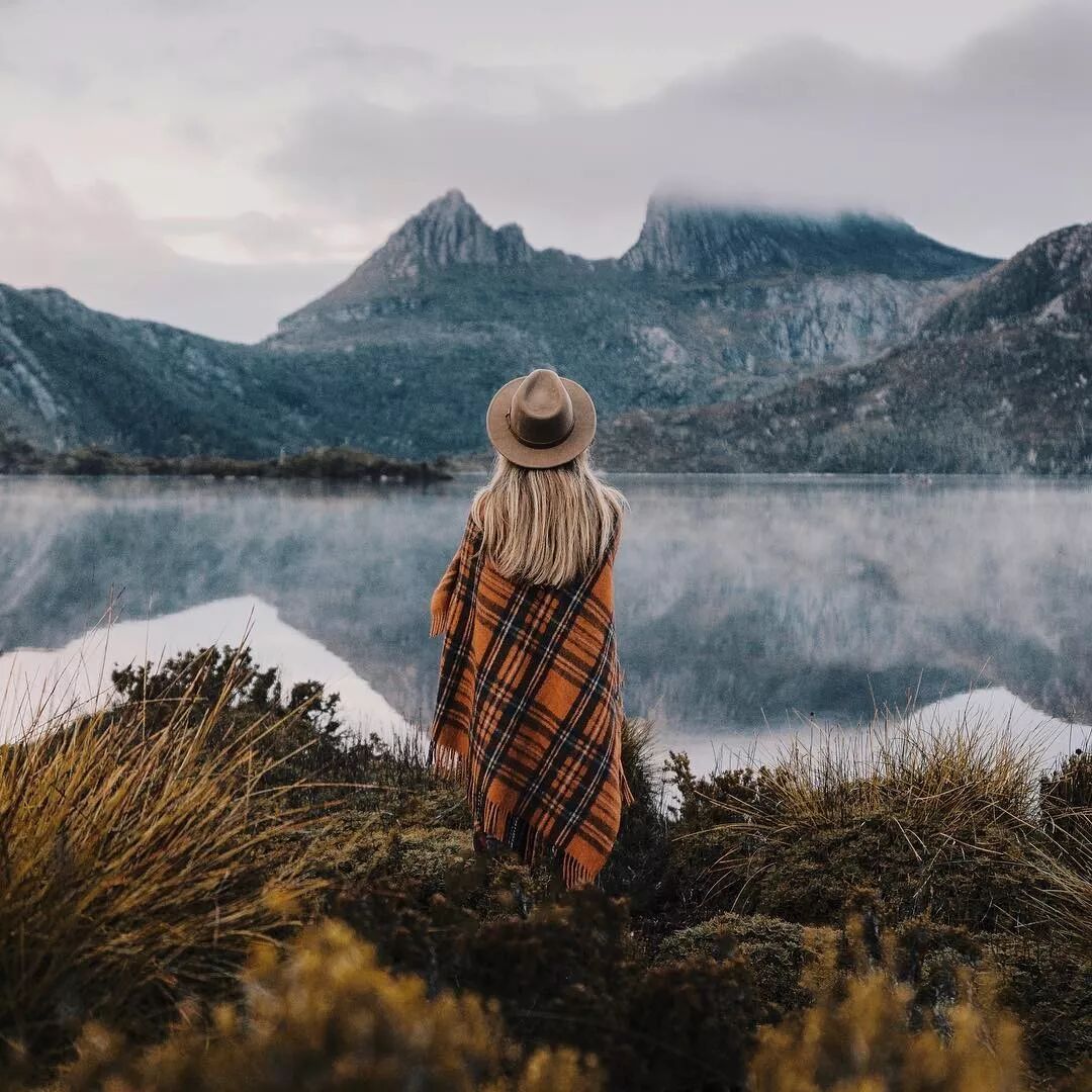 一位女生背对着镜头,站在山河湖海前,有春秋有冬夏,记录着自己美丽的背影,也记录下这最美的大自然。