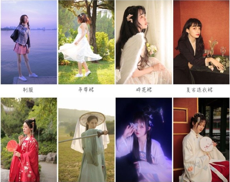 拍照风格主题比较多,根据主题选择合适的服装会更出片哦: