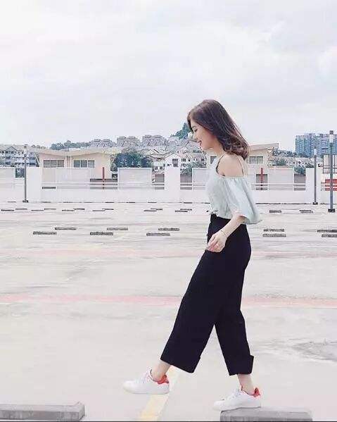 此外,脚可以尽量贴底拍,双腿才会有拉长的效果。显高又显瘦!