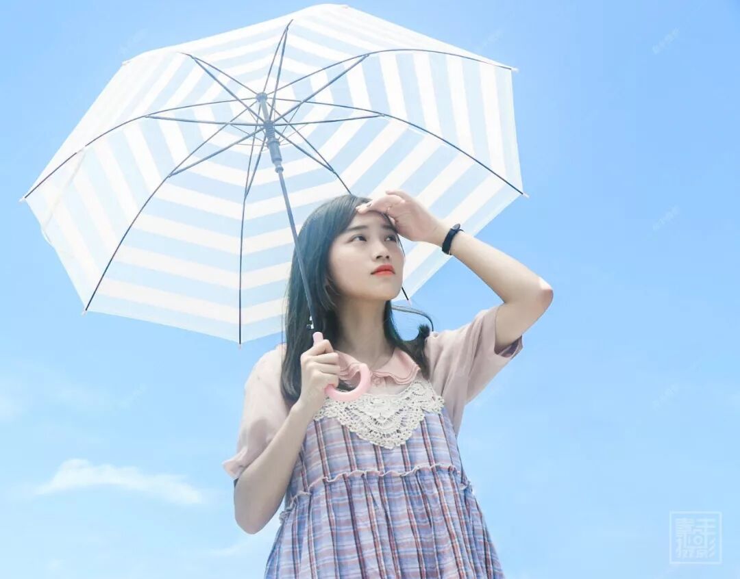 将伞打在头上,和帽子的作用差不多,不过这个覆盖的范围更广了,而使用不同材质的伞,也会有其独特的效果。